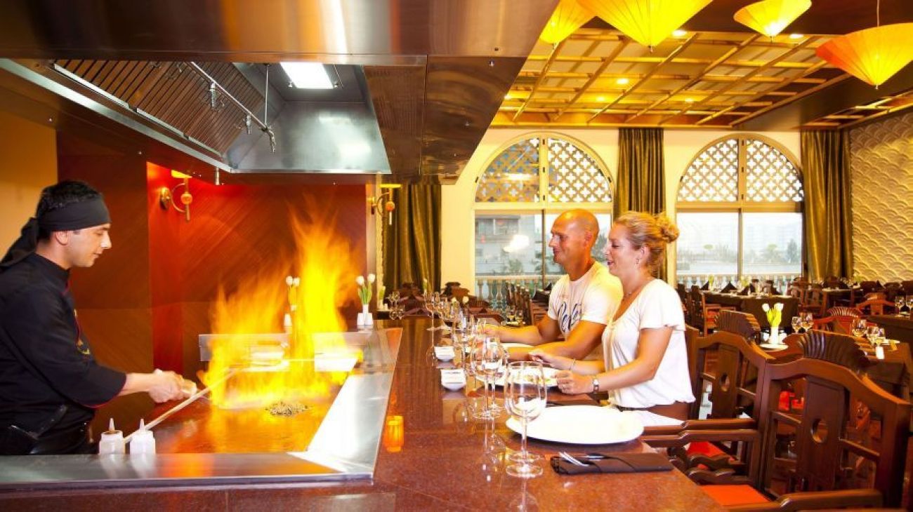 Хотелът предлага основен ресторант с хранене на шведка маса и диетично меню 5 а la carte ресторанта (грил, италиански, мексикански , рибен, източен, всички работещи с предварително записване. При едноседмичен престой едно посещение на един от ресторантите е безплатно) 8 бара (един от които работи 24 часа),