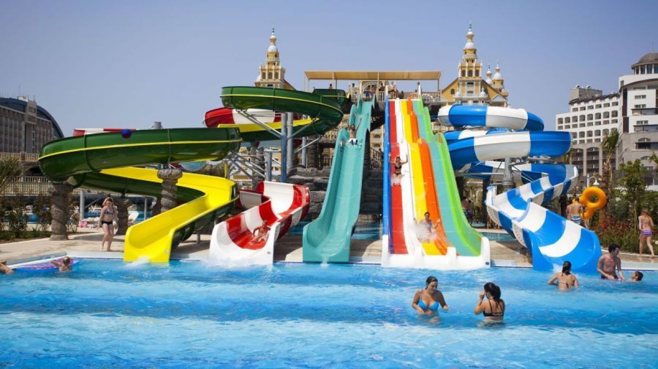открит басейн, закрит басейн, 5 водни пързалки, лекарски кабинет, фризьорски салон, магазини, пералня, химическо чистене, 3 конферентни зали, 1 банкетна зала.