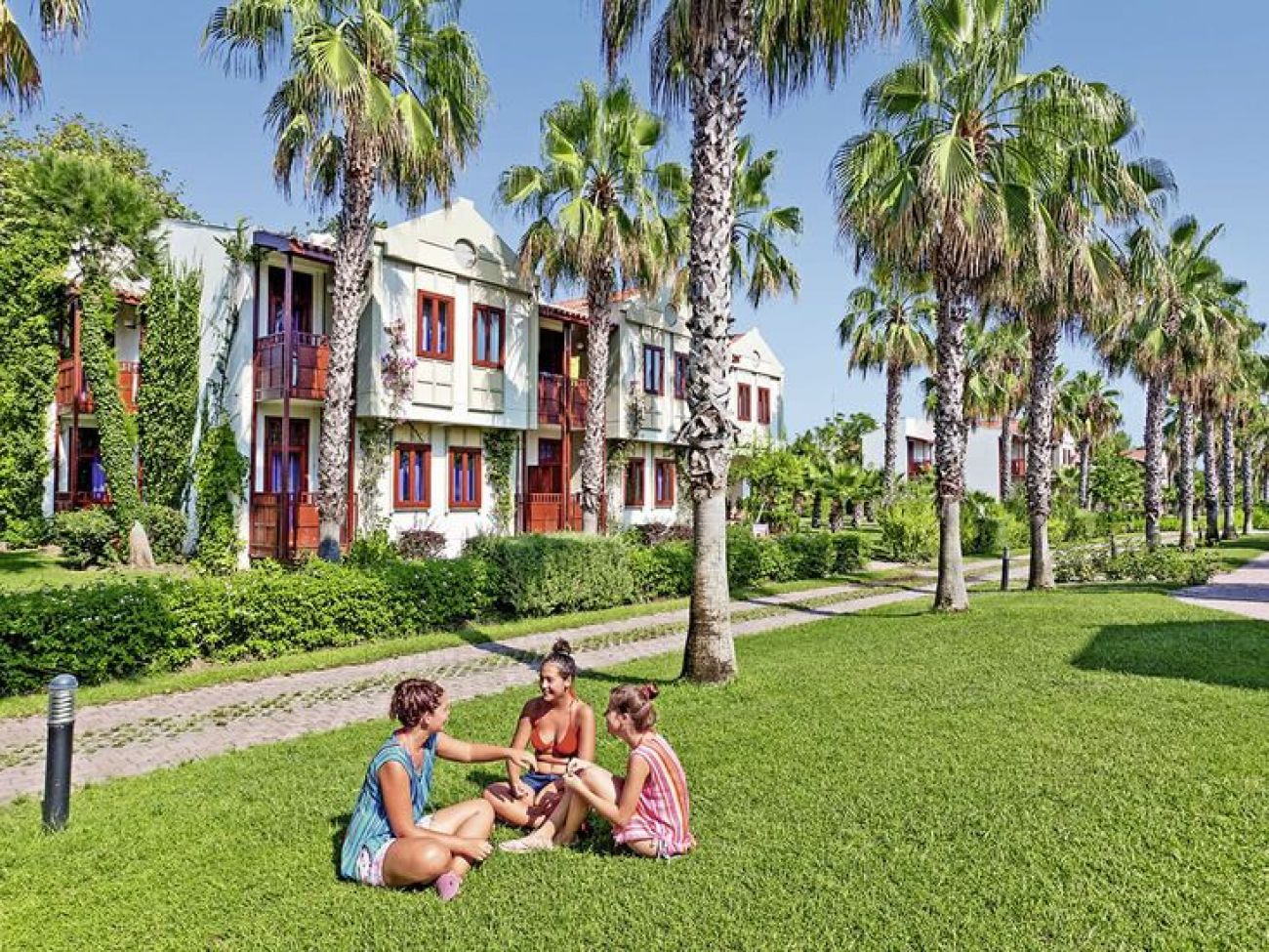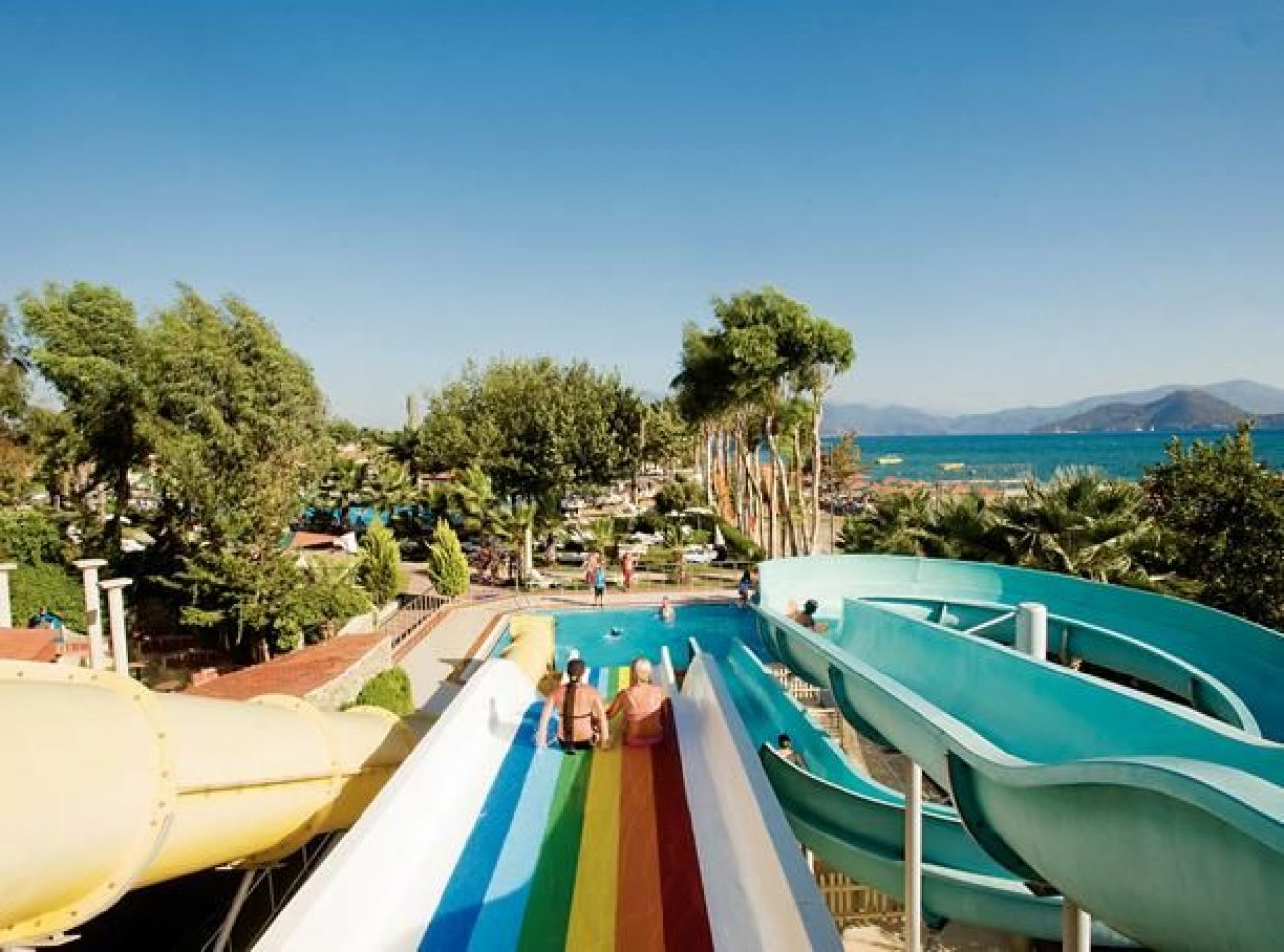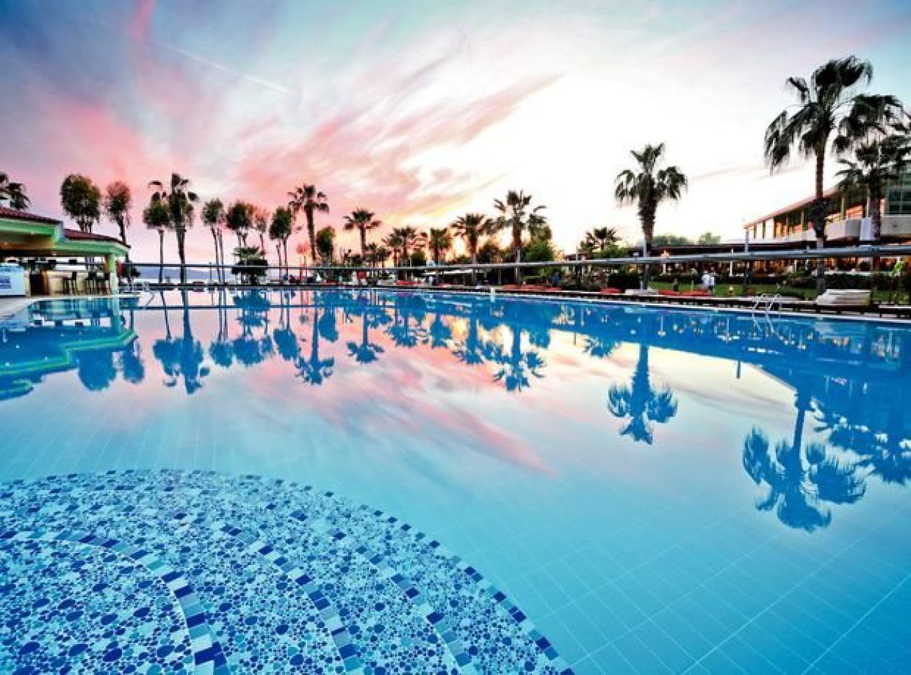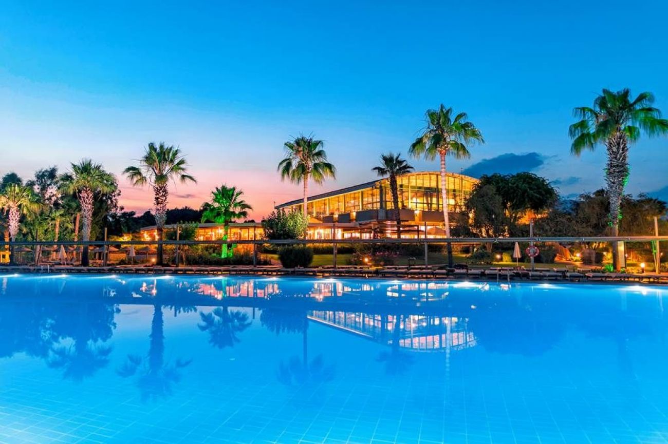 2 ресторанта, 4 бара, 2 открити басейна, 2 водни пързалки, 2 детски басейна, детска площадка, детски басейн, мини-клуб (3-12г.), детегледачка, тв-салон, 3 конферентни зали, турска баня, сауна, фитнес, аеробика, мини-футбол, шоу-програми, безжичен интернет, тенис на маса, тенис на корт (6 корта), плажен волейбол, стрелба с лък, дартс, баскетбол, уиндсърф, катамаран, кану, дискотека, паркинг.