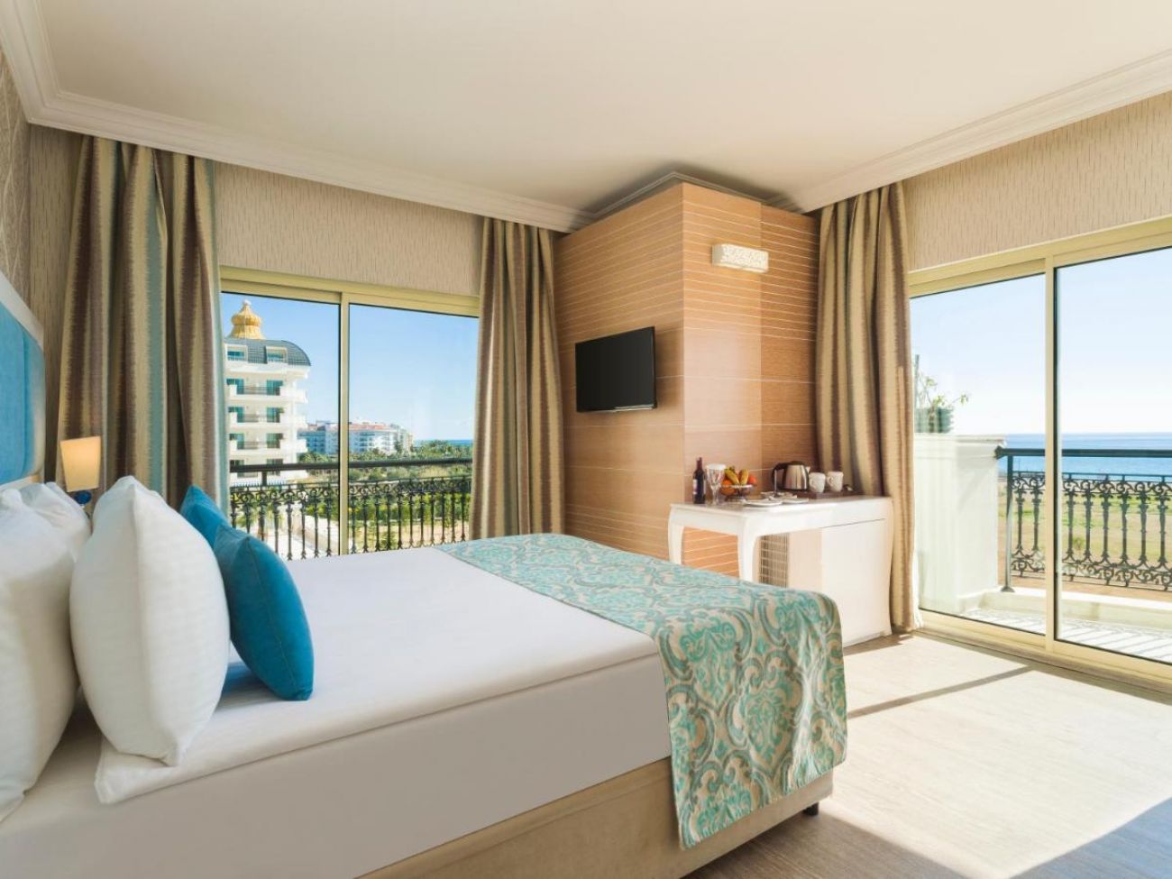 Основен ресторант, а ла карт ресторант ( турски, италиански, азиатски, морски - 1 безплатно посещение при 7 нощ), външен басейн, вътрешен басейн, лоби бар, ирландски пъб, диско, бар до басейна и плажа, СПА център: фитнес, турска баня, сауна; плажен волейбол, тенис на маса, дарц, боча, аеробика,гимнастика, водна гимнастика, интернет в лоби и на територията на хотела, 2 конферентни зали. Срещу заплащане: масажи, разкрасителни процедури, ВИП СПА, фризьор, коли под наем, уроци по плуване, пилатес, водни спортове, лекар, химическо чистене.
