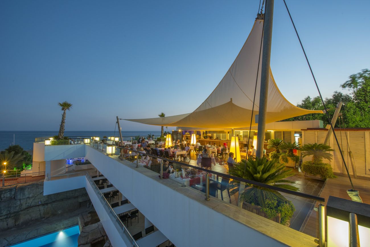 Основен ресторант, а-ла-карт ресторанти (турски, мексикански, италиански (1 безплатно посещение) рибен (15 евро на човек), 6 бара, дискотека, кафе, открит басейн, 2 водни пързалки, амфитеатър, СПА център, анимация, тенис корт, баскетбол, тенис на маса, плажен волейбол, мини футбол, мини голф, водни спортове, вечерна програма. За децата: детски басейн, детска площадка, мини клуб, детска стая, детска занималня, мини диско, стена за катерене, кино, всичко необходимо за бебета срещу запитване като стерилизатори, бебешка храна, детски столчета, ботилки и тн. Услуги срещу заплащане: масажи, различни процедури, химическо чистене, водни спортове на плажа, тенис уроци и оборудване, коли под наем, фризьор, лекар.