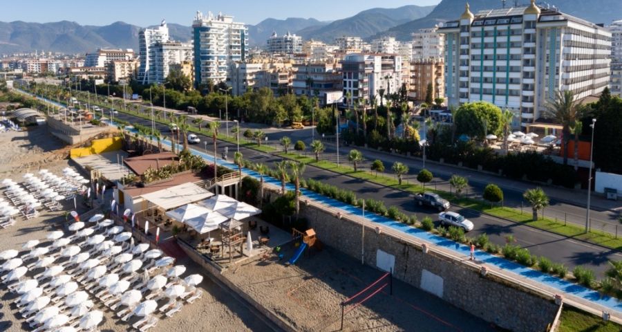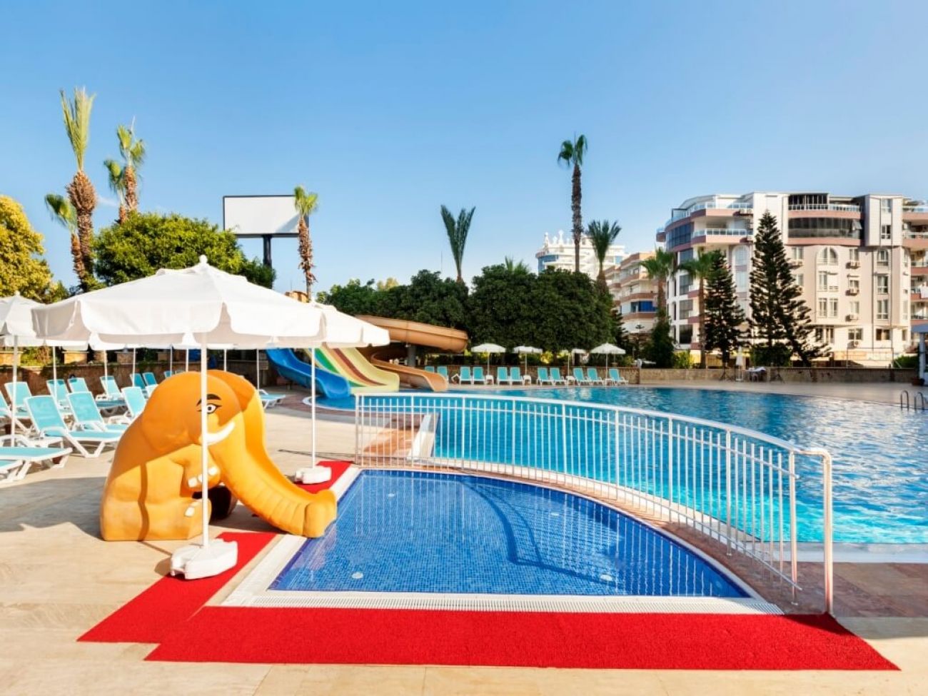 Намира се на 135 км от летище Анталия, на 140 км от центъра на Анталия, на 12 км от центъра на Алания, на 50 м от плажа. Обща площ на хотела 13.100 м2.
