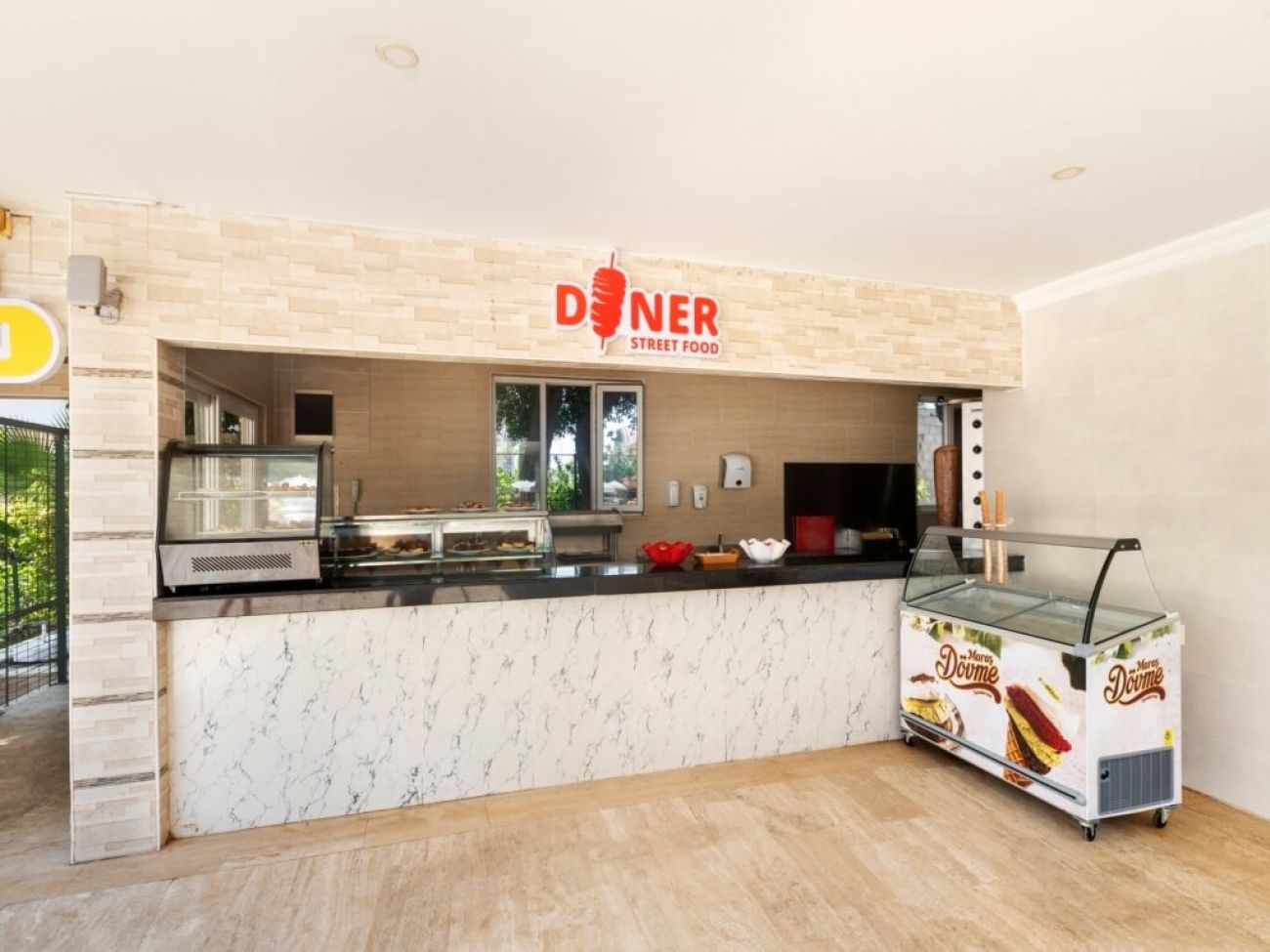 Основен ресторант, 3 бара, 1 открит басейн, 3 водни пързалки, СПА център, Wi–Fi.
