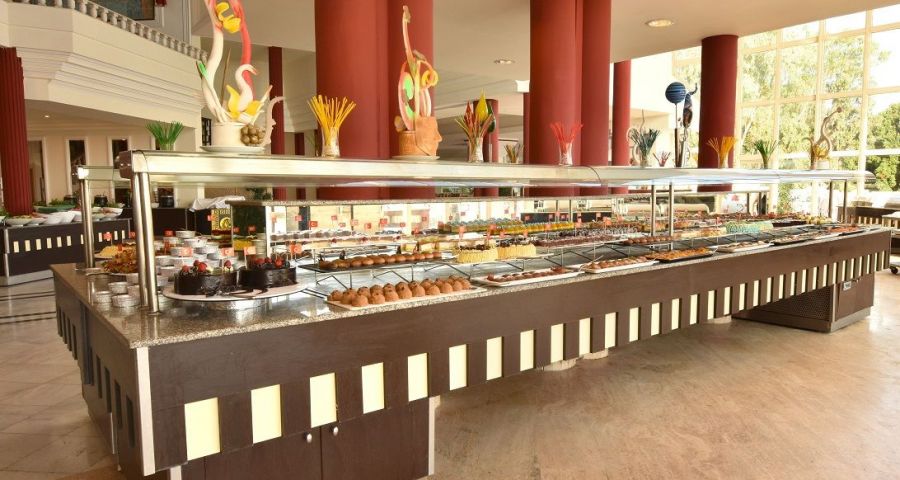 Работно време на основния ресторант: закуска 07:00-10:00, късна закуска 10:00-11:00, обяд 12:30-14:30, вечеря 18:30-21:00. Бюфет. През деня се предлагат закуски на плажа и край басейна.