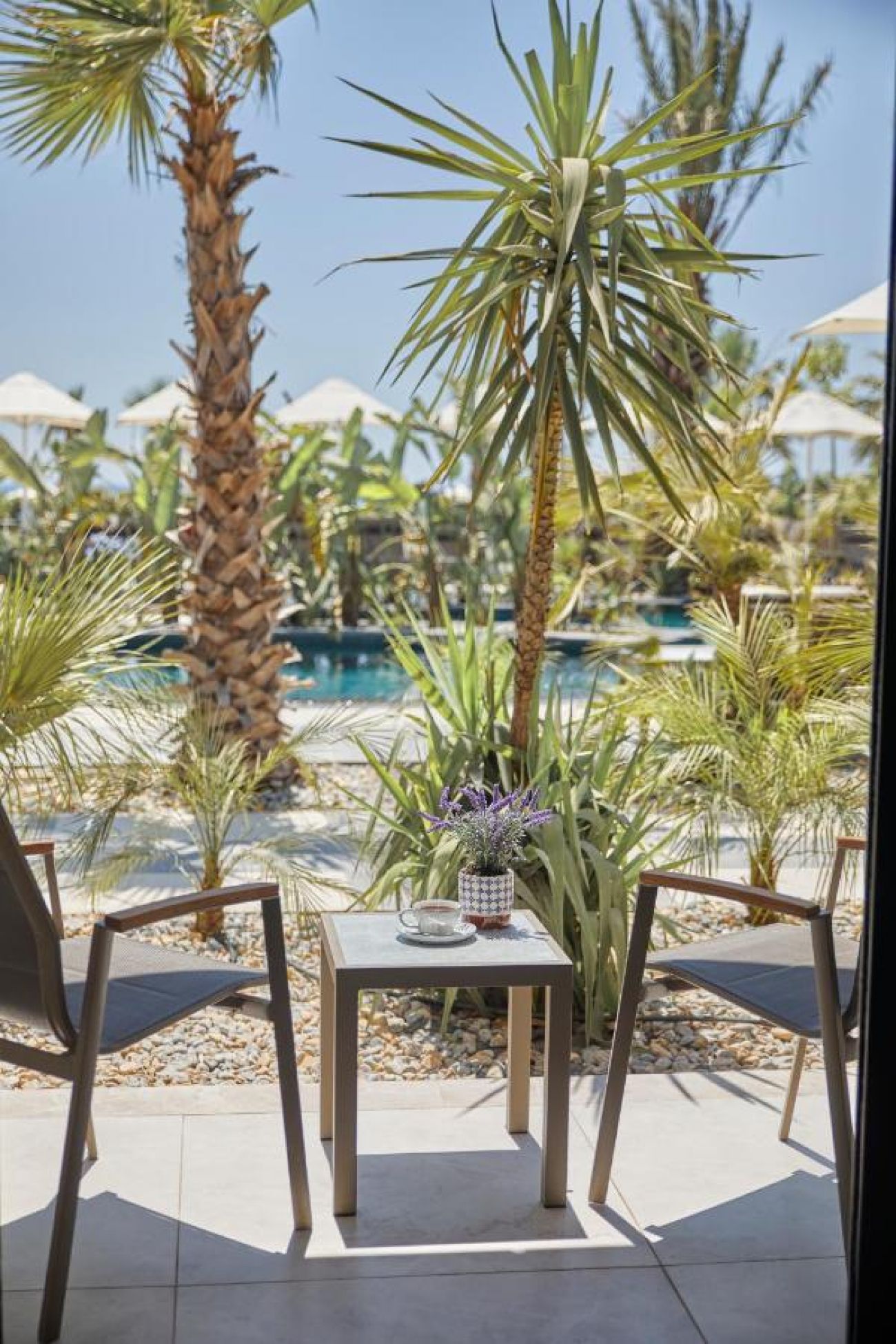 Хотелът разполага с общо 120 стаи, разположени в 2-етажни блокчета. Стаи Superior Room (спалня, баня, без тераса - 29 м²), Deluxe room garden view (спалня, баня, тераса, с изгглед градина - 34 м²), Deluxe Room Sea View (спалня, баня, тераса, с изгглед море - 34 м²), Suite Room (1 спалня, 1 хол, 1 баня, тераса - 63 м²), Jacuzzi suite room (1 спалня, 1 хол, 1 баня, джакузи, тераса - 63 м²), Family Room (2 спални, 1 баня - 63 м²).