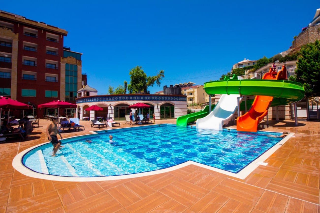 Разположен е в района на Конакли, на 12 км от центъра на Алания, на 120 км от летище Анталия.
