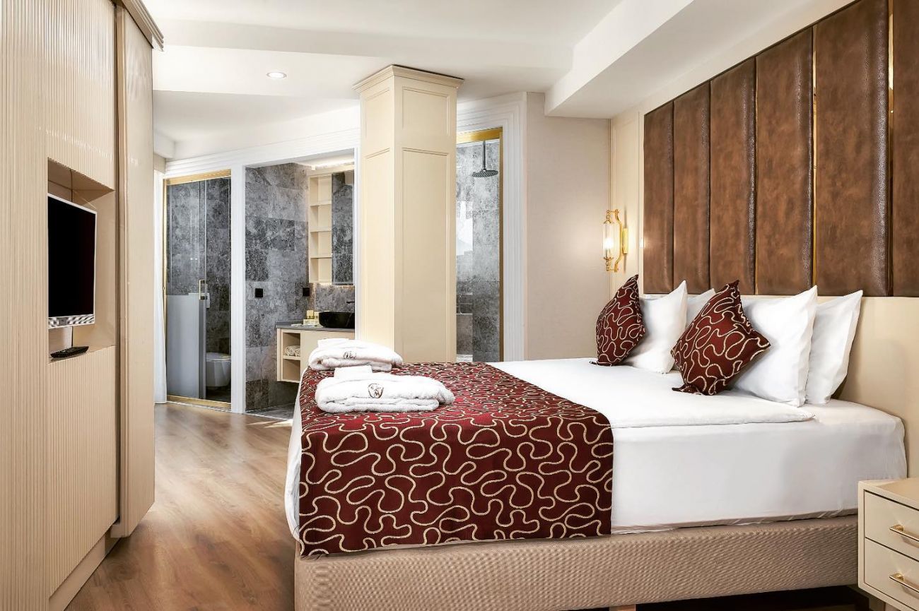 200 Standard room (двойно легло или две единични, изглед суша, басейн или море - 24 – 26.5 м2); 34 Connection Standard Rooms (две двойни и две единични легла, изглед суша, басейн или море - 52 м2); 197 Family Suites (2 спални, изглед суша, басейн или море - 36 – 38 м2); 4 Junior Suite Rooms (двойно легло, изглед суша, басейн или море – 46м2); 1 Selective Suite Room (двойно и единично легло, балкон с джакузи и сауна, изглед басейн или море – 25 м2); 1 King Suite Room (двойно легло, балкон с джакузи и сауна, изглед басейн или море – 46 м2);