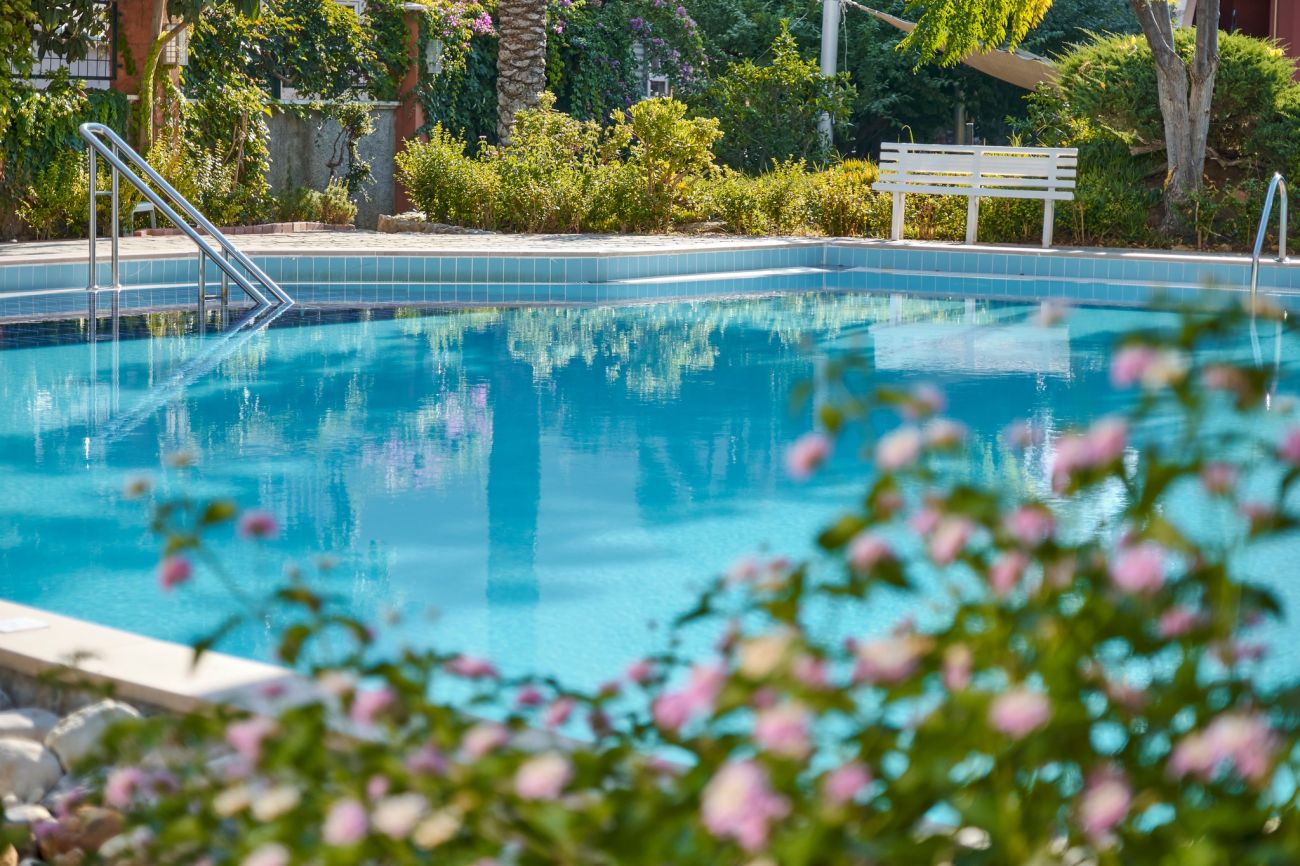 Собствен, на 100м от хотела, пясъчен със сертификат „Син флаг“, с дължина на плажната ивица 80 м. Чадъри и шезлонги и плажни кърпи на плажа и при басейна – безплатно.