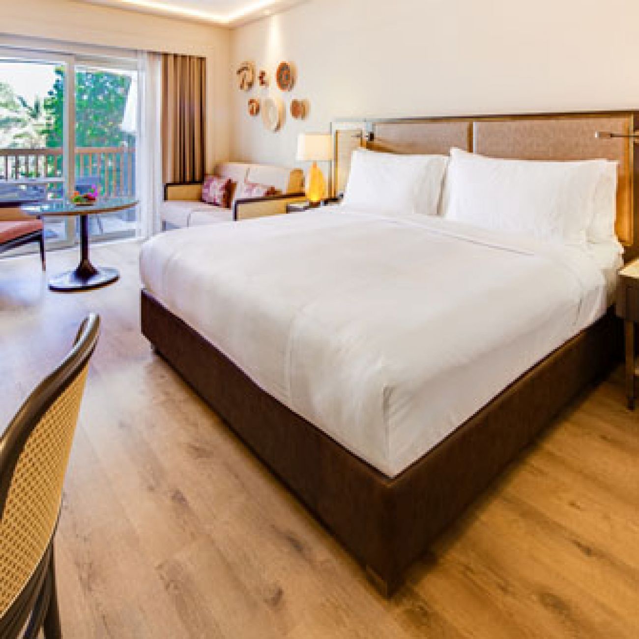 Стаи Standard Room (1 спалня, 1 баня - 33 м²), Superior Room (изглед градина, 1 спалня, 1 баня - 33 м²), Deluxe Garden View (изглед градина, 1 спалня, 1 баня - 35 м²), Deluxe Pool View (изглед басейн,1 спалня, 1 басейн - 35 м²), One Bedroom Suite Pool View (изглед басейн, спалня със зона за сядане, 1 баня - 55 м²), One Bedroom Suite Sea View (изглед море, спалня със зона за сядане, 1 баня - 55 м²).