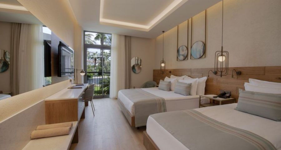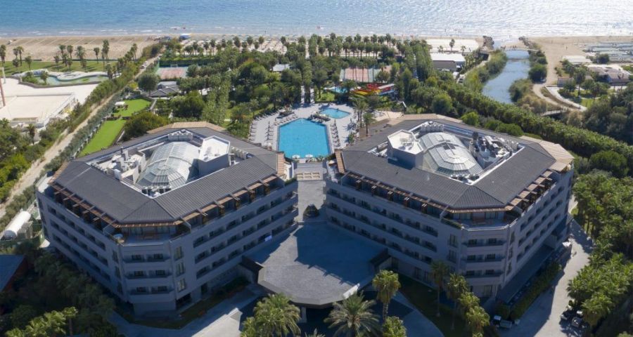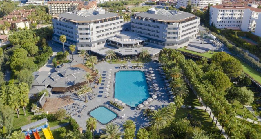 Хотелът се намира в село Кумкой, на 6 км от древния град Сиде, на морския бряг. Състои се от една 4-етажна сграда (4 асансьора). Гостите на хотела могат да използват територията и услугите на хотел Miramare Queen (с изключение на основния ресторант). Последна реновация 2020 година. Територия - 40 000 кв.м. Хотелът разполага с 218 стаи.