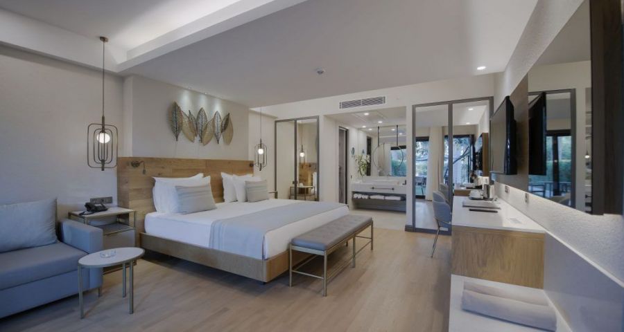 Балкон, Сейф, врата между двете помещения, централен климатик, сателитна телевизия, минибар, сешуар, душ, телефон- платено, Wi-Fi, Междинна врата между двете помещения.