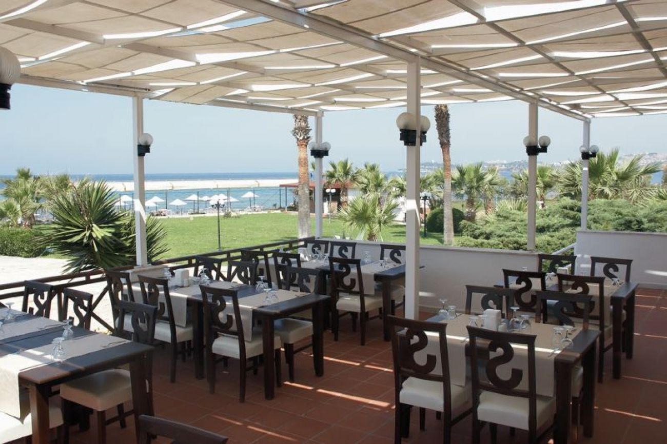 На 80 км. от летището в гр. Измир, 7 км от центъра на Кушадасъ, на брега на морето със собствен пясъчен плаж на Лонг бийч. Реновиран през 2012 година.