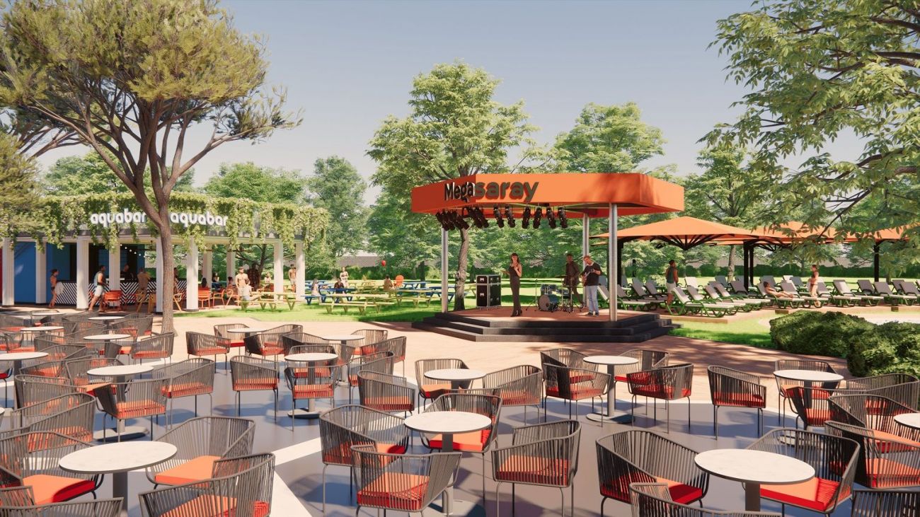 1 външен басейн с 2 пързалки (110 кв.м).