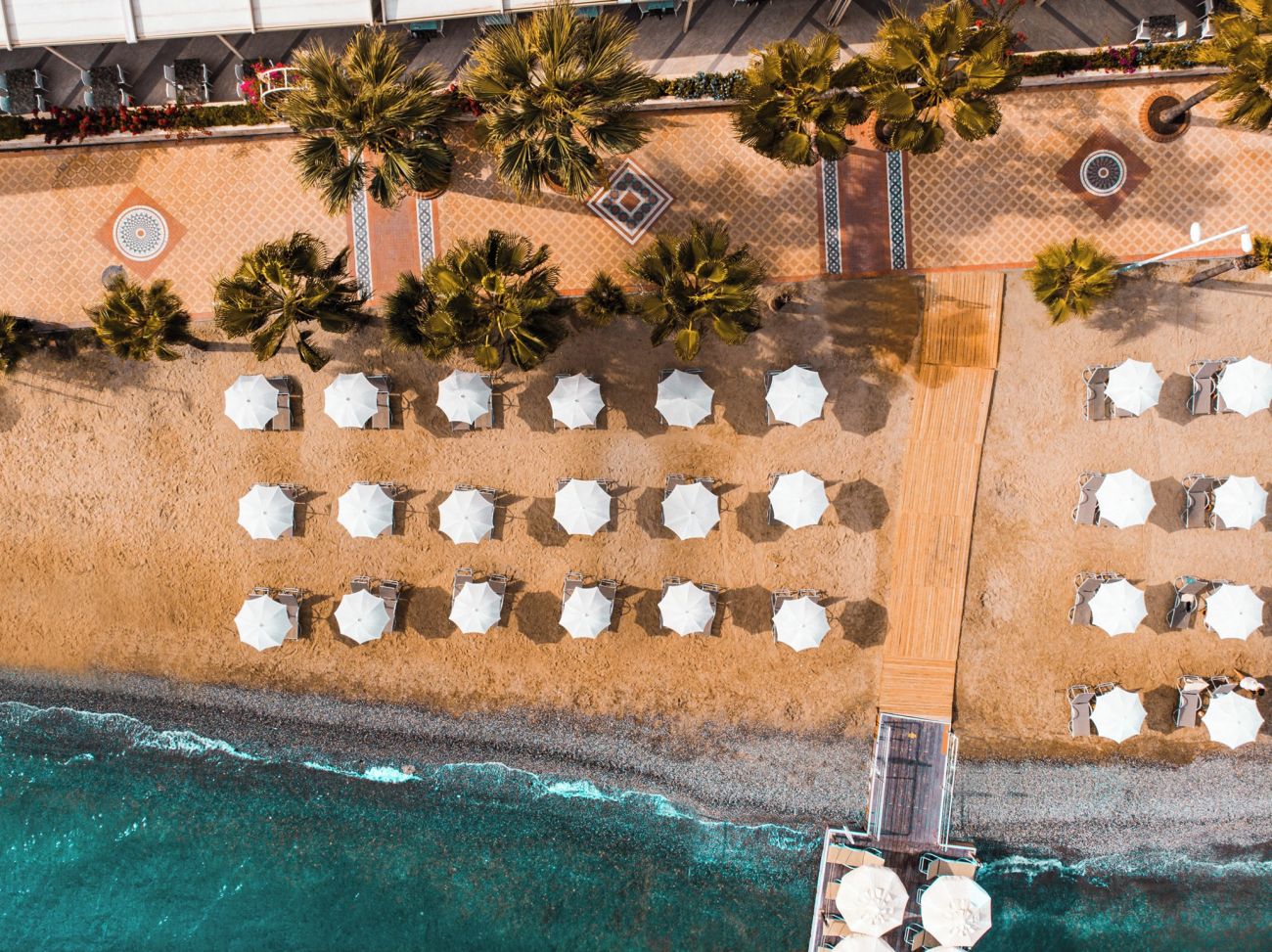 Собствен, пясъчен – чадъри и шезлонги на плажа и при басейна – безплатно, плажни кърпи – безплатно, при смяна – срещу заплащане.