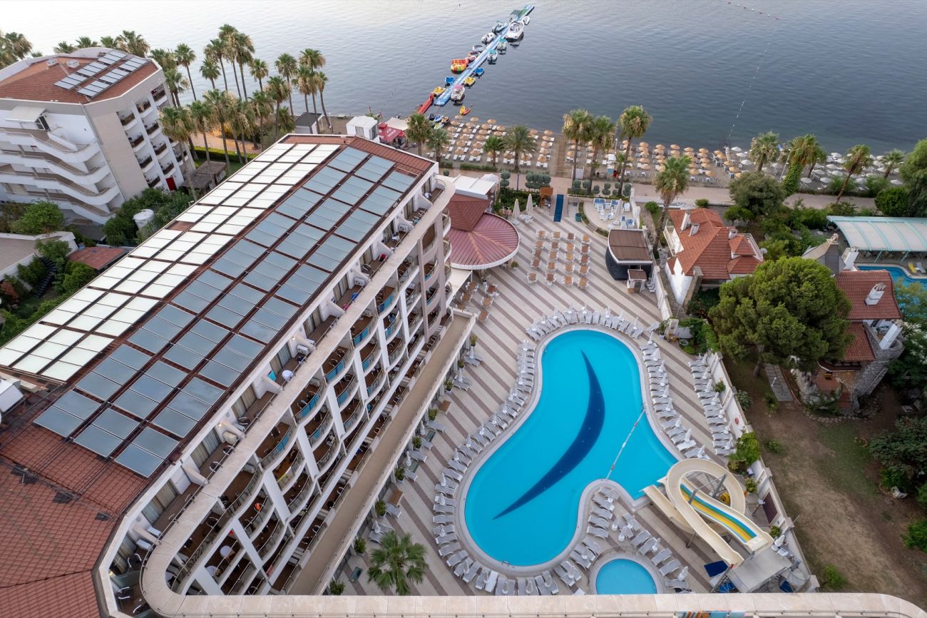 Хотелът се намира на 130 км. от летище Милас, на 90км от летище Даламан, на 3 км. от центъра на Мармарис, на брега на морето. Построен през 2012 г. с обща площ от 5 500 м2.