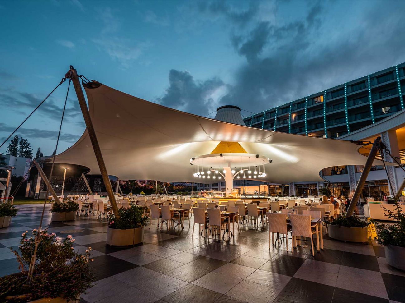 Основен ресторант, 3 а-ла-карт ресторанта (италиански, рибен и туски), детско меню, 4 бара, открит басейн 1200 м2, водна пързалка, релакс басейн, детски басейн, закрит басейн, анимация, вечерни шоу програми, жива музика, детски клуб (4-12г.), СПА център, конферентни зали.