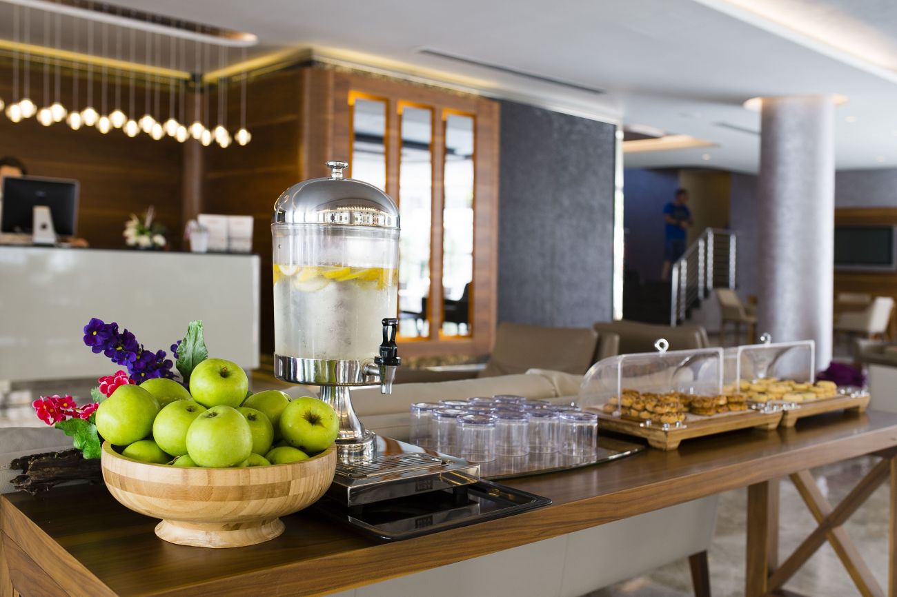 Основен ресторант, 4 бара, 4 басейна (основен, аква басейн с 5 водни пързалки, релакс басейн, плувен басейн), 3 детски басейна, фитнес център, амфитеатър, паркинг.