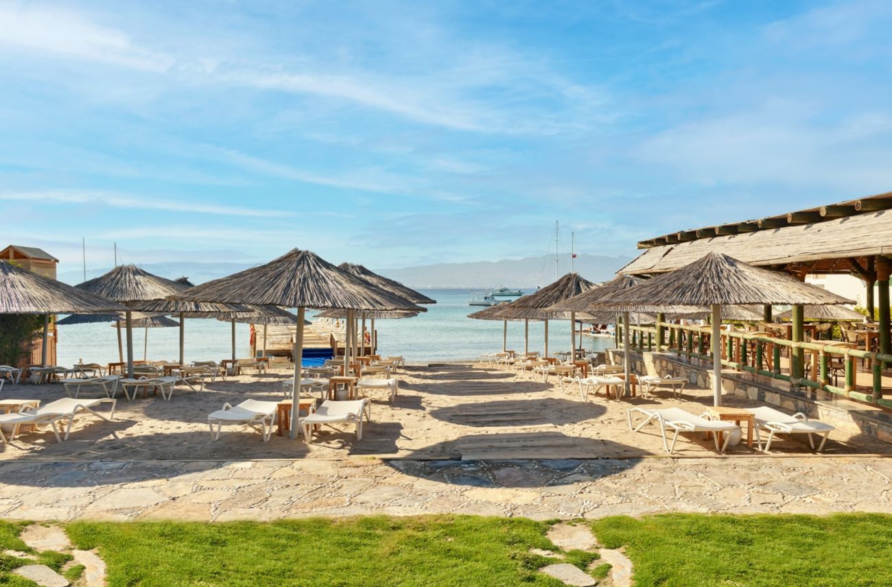 Собствен, пясъчен, платформа. Чадъри, шезлонги и плажни кърпи на плажа и при басейна – безплатно.
