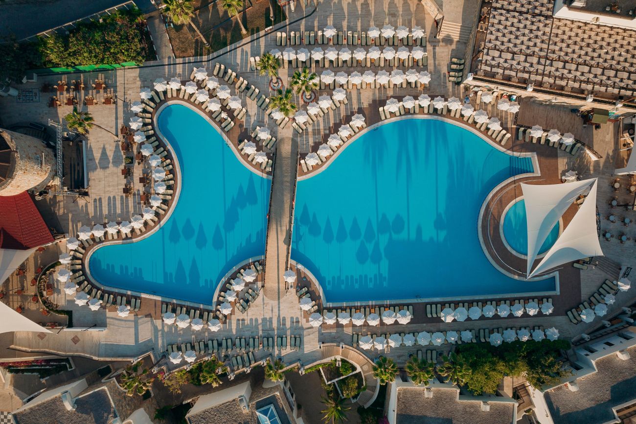 Намира се на 37 км от летище Бодрум, на 4 км от центъра на Бодрум, в района на Гюмбет, на брега на морето. Построен 1999 г., на обща площ от 38 000 м². Реновиран 2023 г.