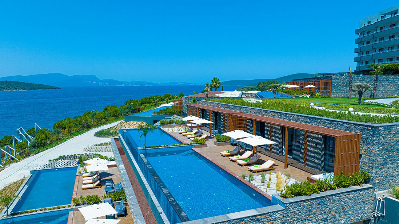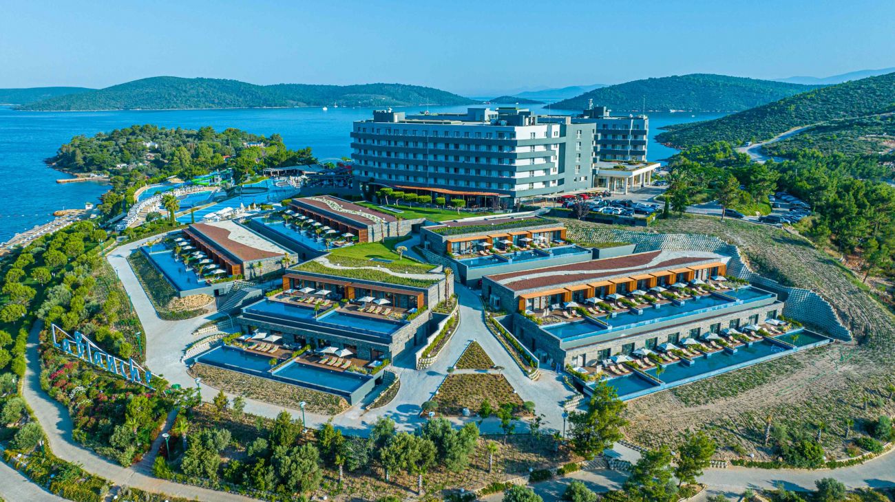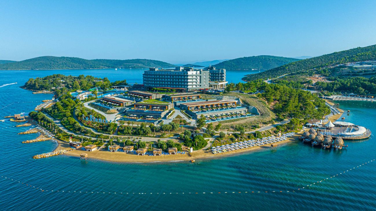 Намира се на 15 км. от летище Бодрум, на 26 км. от центъра на Бодрум, на 3 км от центъра на Гюверджинлик, на брега на морето. Построен през 2012 г., на обща площ от 82 000 М². Реновиран през 2023/2024 г. - ресторантите, общите части и подобрена Ultra All Inclusive концепция.