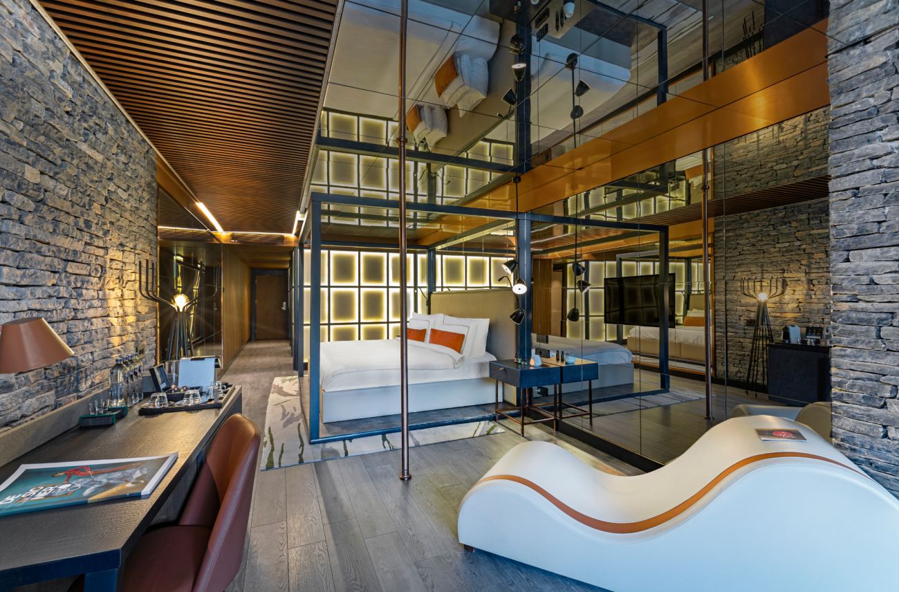 Стаи: Superior Room Side Sea View (спалня със зона за сядане, баня, страничен изглед море - 45 м²), Indigo Clubber Terrace Room (1 спалня, 1 баня, тераса с шезлонг, вана на терасата, стая само за възрастни – 42-70 м²), Superior Room Sea View (спалня със зона за сядане, баня, изглед море - 45 м²), Indigo Laguna Clubber Room (1 спалня, 1 баня, тераса с шезлонг, директен достъп до общ басейн, стая само за възрастни – 50 м²), Terrace room sea side view (1 спалня, 1 баня, тераса с шезлонг, джакузи на терасата – 50 м²), Deluxe Sea Side View (спалня със зона за сядане, 1 баня, гардеробна, тераса – 55 м²), Superior Laguna room (спалня със зона за сядане, 1 баня, гардеробна, директен достъп до общ басейн, – 60 м²), Terrace Room Sea View (спалня със зона за сядане, 1 баня, гардеробна, тераса с шезлонг, джакузи на терасата – 50 м²), Deluxe Room Sea View (спалня със зона за сядане, 1 баня, гардеробна, тераса, изглед море – 55 м²), Laguna Deluxe Room Partly Sea View Swim up (спалня със зона за сядане, баня, гардеробна, директен достъп до общ басейн, частичен изглед море – 60 м²), Laguna Deluxe Room Land View (спалня със зона за сядане, баня, гардеробна, директен достъп до общ басейн, изглед суша - 60 м²), Laguna Deluxe Room Sea View Swim up (спалня със зона за сядане, баня, гардеробна, директен достъп до общ басейн, изглед море - 60 м²), Family room (1 спалня със зона за сядане, 1 спалня с отделни легла, 1 баня, гардеробна, тераса, възможност за изглед – море, частичен изглед море, изглед суша – 65 м²). Суитове: Family Corner Suite (2 спалня, 1 хол, 2 бани, 2 гардеробни, тераса – 95 м²), Family Corner Terrace (2 спалня, 1 хол, 2 бани, 2 гардеробни, тераса с джакузи – 95 м²), Laguna Duplex Family Suit (3 спални със зона за сядане, 3 бани с гардеробно помещение, 1 тераса с джакузи, 1 тераса с директен достъп до общ басейн - 140 м²).