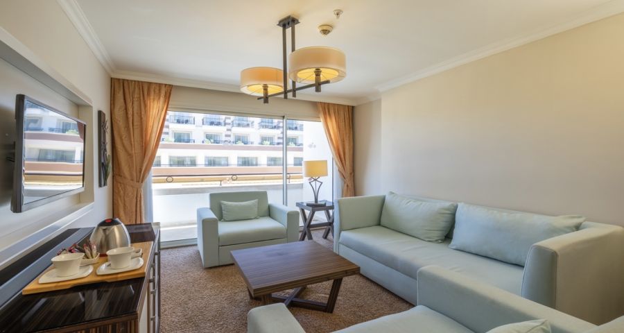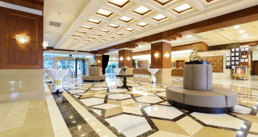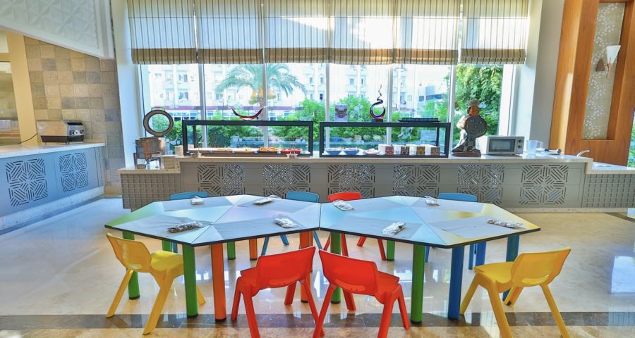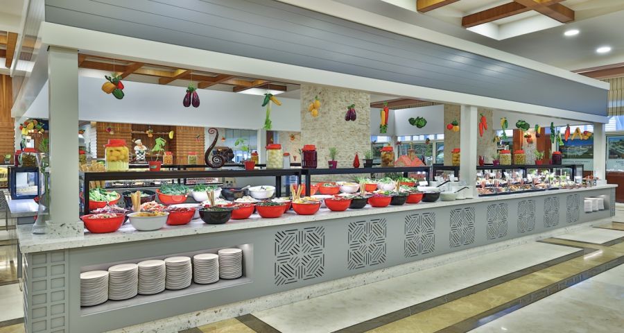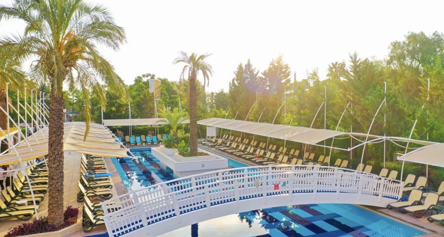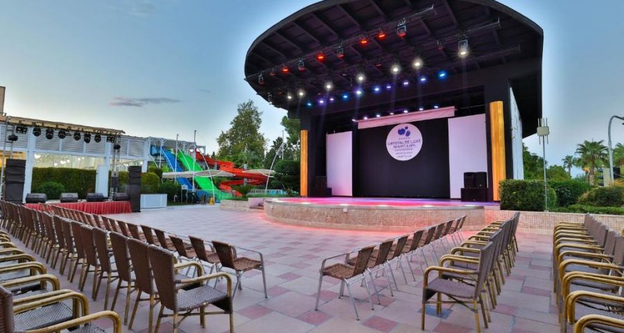 Основен ресторант, а - ла - карт ресторант (с предварителна резервация), 4 бара, 3 открити и 2 закрити басейна, водни пързалки, магазини, СПА център, дискотека, кино, конферентни зали, паркинг. За децата: Детска площадка, мини клуб (4-12 г.), 2 детски басейна – външен и вътрешен, водни пързалки, анимация. Безплатни услуги: Турска баня, сауна, джакузи, фитнес, дартс, тенис на маса, тенис корт (с предварителна резервация), баскетбол, аеробика, водна гимнастика, кино, жива музика, анимация, интернет. Платени услуги: Масаж, фризьор, търговски център, билярд, боулинг, джаги, интернет кафе (с предварителна резервация), видеоигри, химическо чистене, лекар, водни спортове, наем на топки и ракети за тенис, осветление за тенис корта.