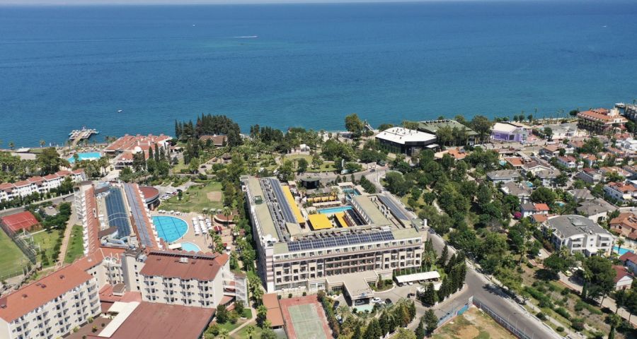 Хотелът се намира на 56 км. от летище Анталия, на 38 км. от центъра на Анталия, в района на Кемер, на 75 м. от брега на морето. Построен през 2008 г. с обща площ от 16 000 м2.