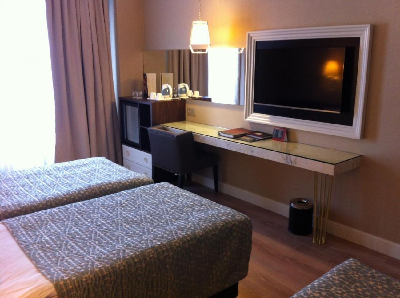Всички стаи са оборудвани с климатик, телевизор, телефон, баня с душ, сешоар, сет за чай/кафе, минибар (безплатен), сейф (безплатен), френски балкон или тераса.