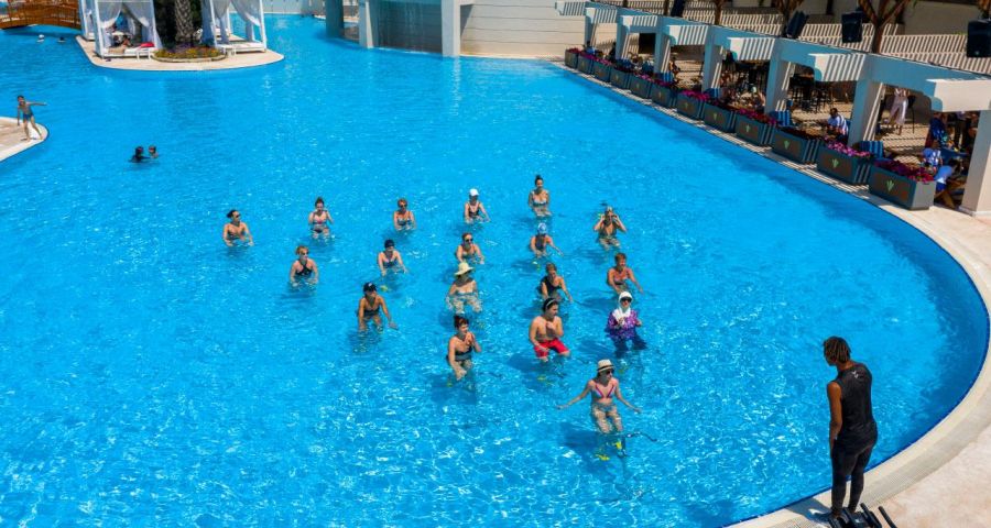 Безплатни услуги: Сауна, турска баня, парна баня, зона за релакс, фитнес, мини футбол, баскетбол, тенис корт, тенис на маса, плажен волейбол, водно поло, водна гимнастика, дартс, боча, билярд, бадминтон, табла, танци, табата, йога, стречинг, пилатес, степ зумба, канго джъмп, спортни тренировки, звукова терапия, жива музика, анимация, Wi-Fi (на цялата територия).