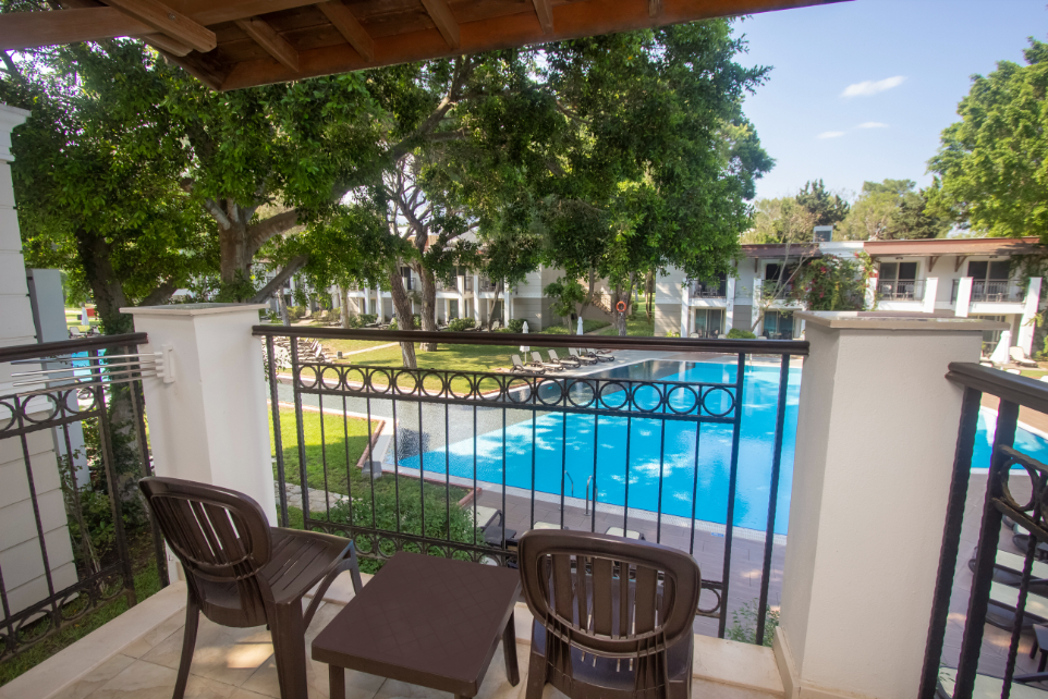 Deluxe Superior Room - 38 м2, 1 двойно легло и 1 единично легло, диван, баня с душ, балкон, гледка към басейна.