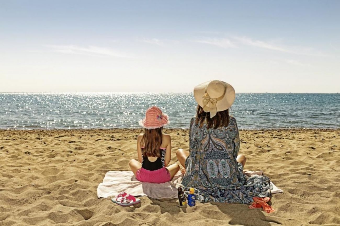 Собствен, пясъчен. Чадъри, шезлонги, матраци и плажни кърпи на плажа и при басейна - безплатно.