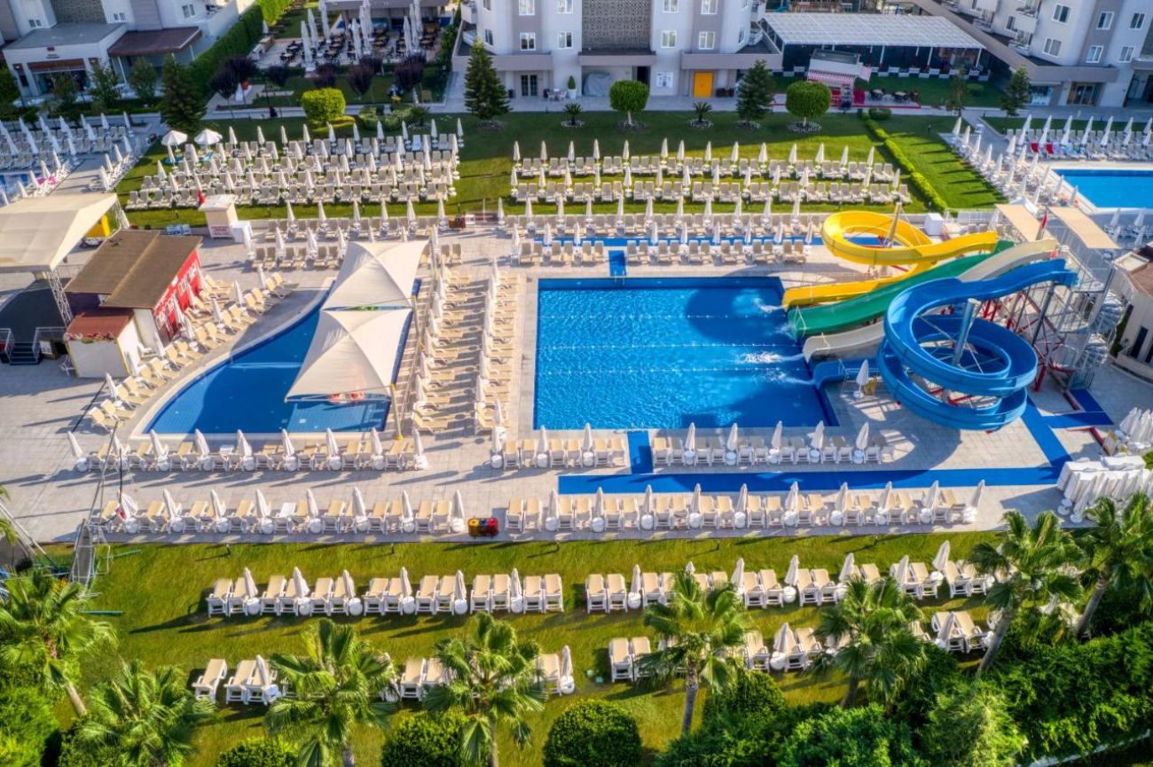 Намира се на 14 км от летище Анталия, на 10 км от центъра на Анталия, на 8 км от центъра на Лара, на 200 м от брега на морето. Построен 2013 г., на обща площ от 35 000 м2. Реновиран 2016 г.