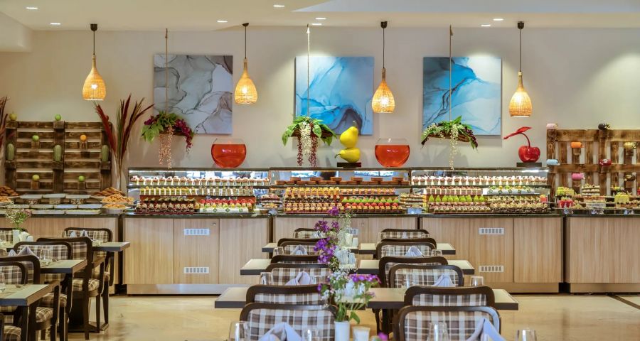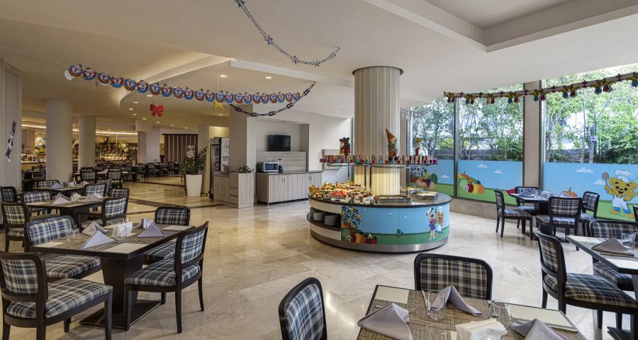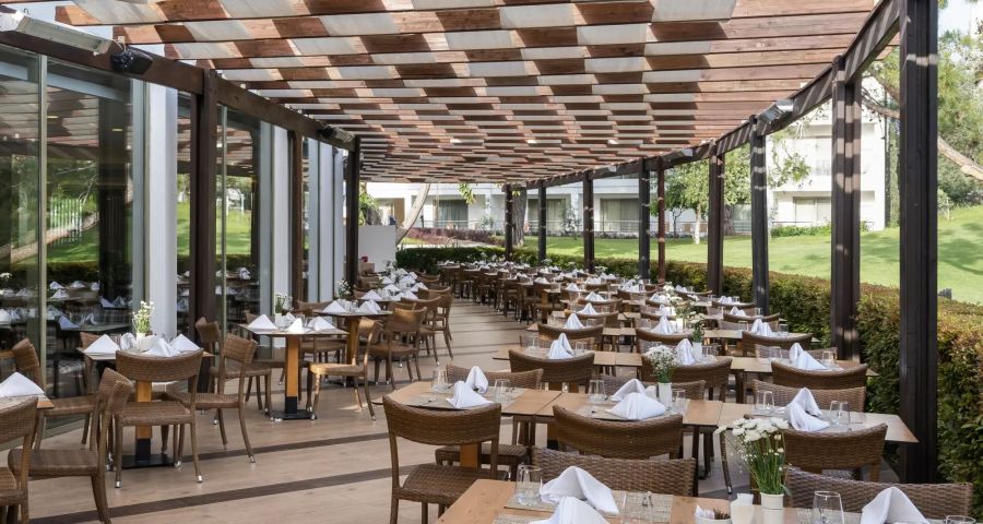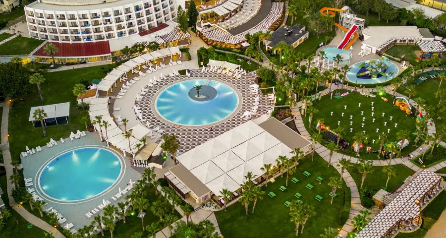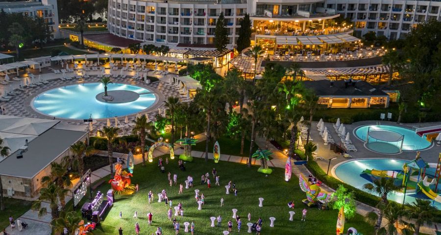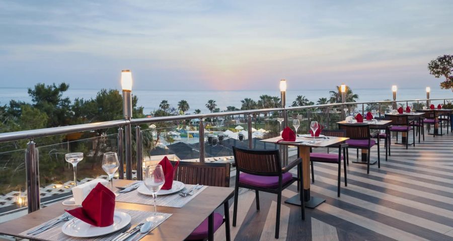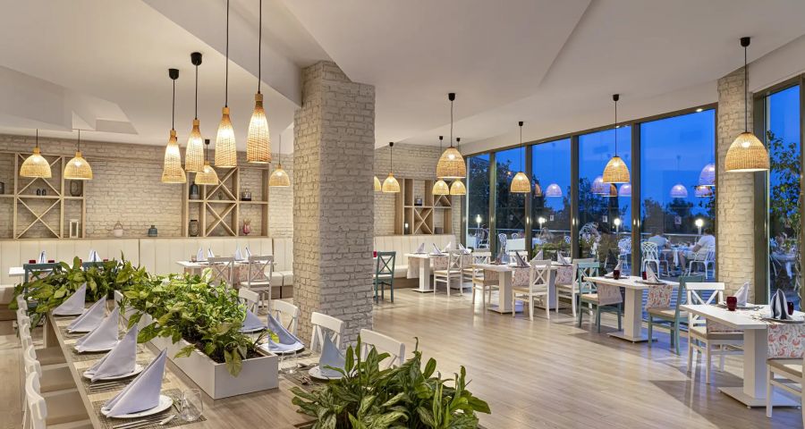 Основен ресторант, 3 а-ла-карт ресторанта (италиански, гръцки, барбекю - 1 безплатно посещение на 1 от ресторантите при минимум 7 нощувки, с предварителна резервация), 4 бара (1 от които 24-часа), 2 открити и 1 закрит басейн, 2 водни пързалки, СПА център, дискотека, магазини, конферентна зала, паркинг.