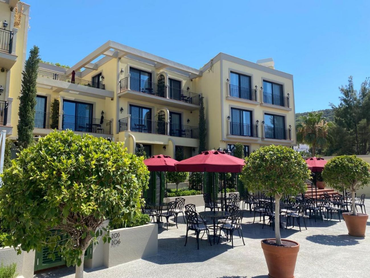 Хотелът разполага с 24 Deluxe Rooms и 10 Suites, всички с гледка към морето: 14 Deluxe Garden Sea View (35 m², с директен достъп до инфинити басейн и шезлонг), 10 Deluxe Balcony Sea View Room (35 m²), Deluxe Beachfront Room (50 m², с директен достъп до плажа и балкон), 1 One Bedroom Beachfront Suite (70 m², състои се от спалня, трапезария и баня с директен достъп до плажа), 1 Two Bedroom Beachfront Suite (75 m², състои се от 2 спални с едно двойно легло и две единични легла, трапезария, 2 бани, тераса с директен достъп до плажа), 2 Junior Suite (90 m², състои се от спалня, гардеробна и тераса с шезлонги), 1 Bodrum Suite (100 m², състои се от трапезария с кухня, спалня, гардеробна и две бани), 3 Jacuzzi Suite (80 - 110 m², състои се от спалня, трапезария, тоалетна, гардеробна, баня и джакузи на терасата), 1 Pool Suite (130 m², състои се от трапезария, 2 спални и 3 бани, има собствен басейн и зона за слънчеви бани), 1 Casa Nonna Suite (състои се от две отделни помещения: Bodrum Suite и Jacuzzi Suite, свързани с врата; общо две спални, четири бани с тоалетни и две дневни).