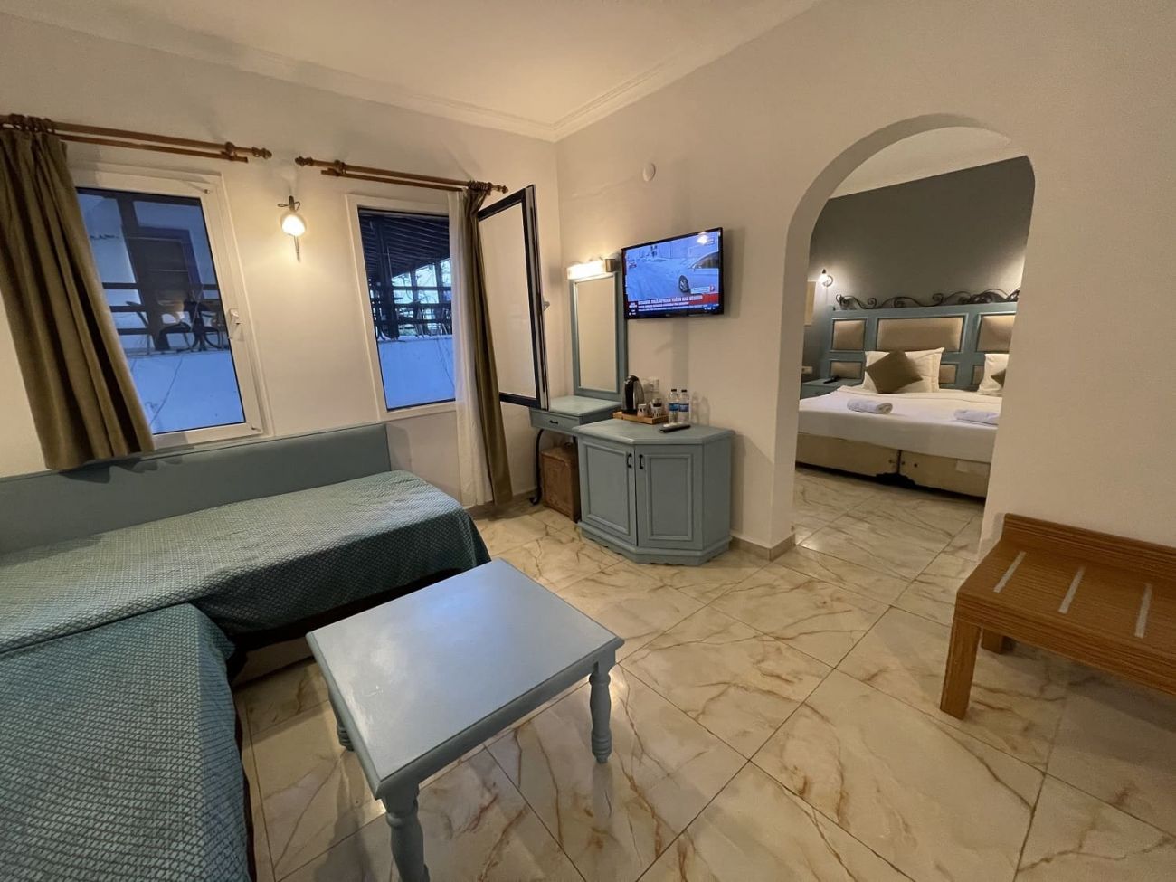 Стаи Standard room (1 спалня, 1 баня - 18 М² - 23 М²), Family room (3 единични легла, 1 баня - 25 М²), Suite room (1 спалня, хол, 1 баня - 35 М²).