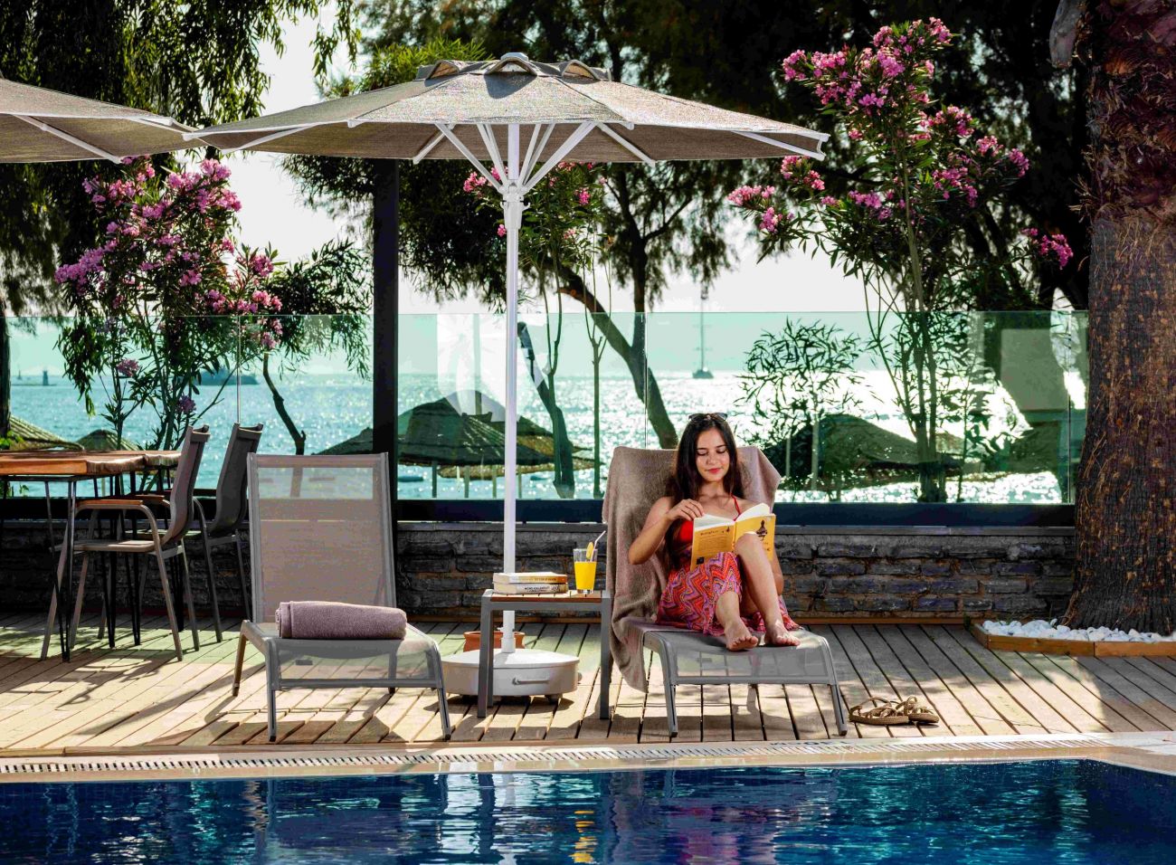 Намира се на 50 км от летище Бодрум, на 17 км от центъра на Бодрум, на 600 м от центъра на Ялъкавак, на брега на морето. Реновиран 2019 г.