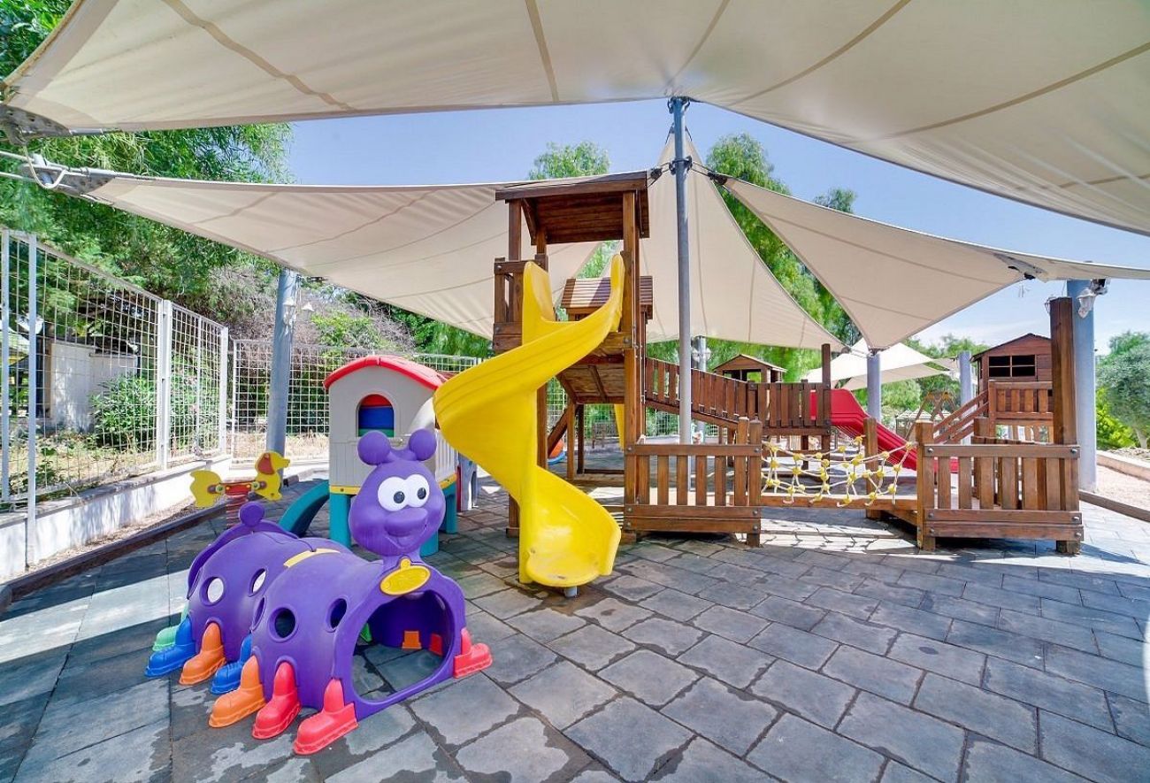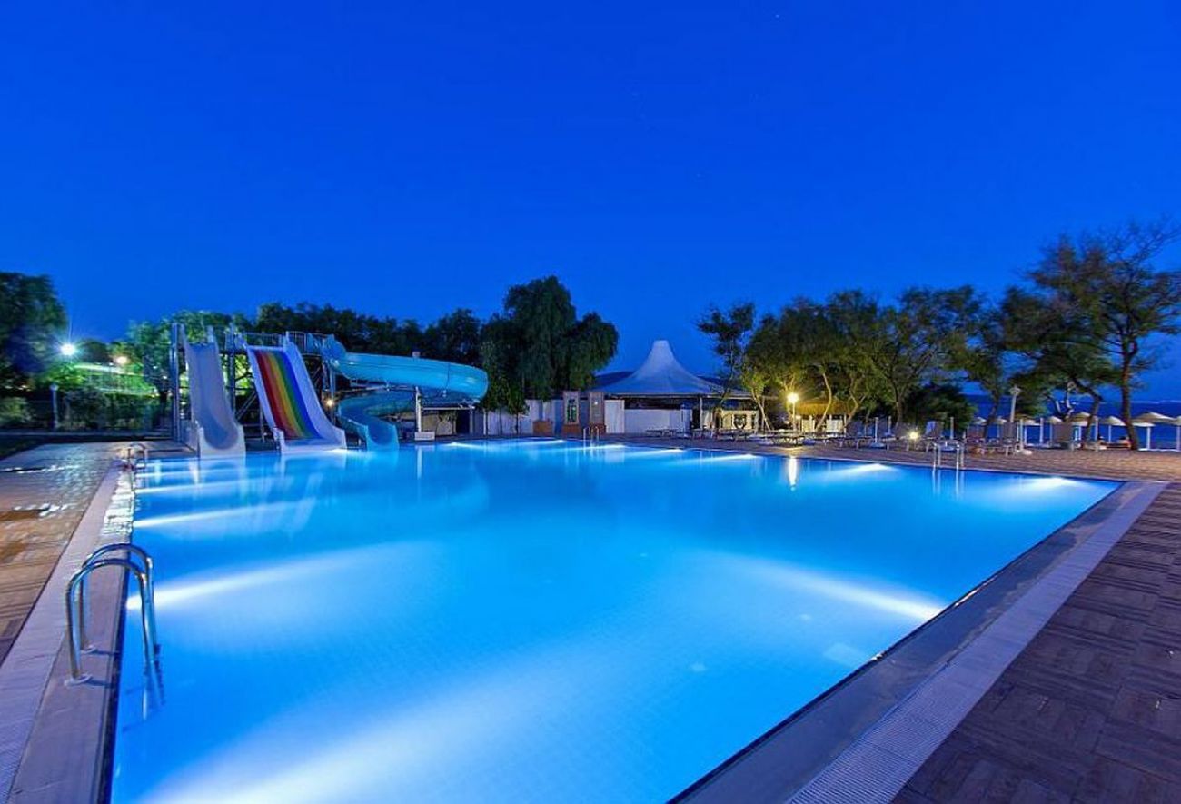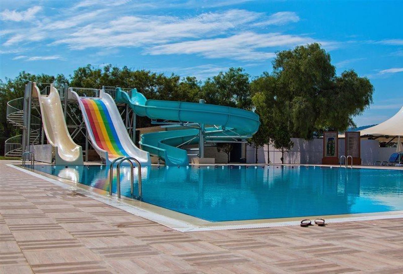За децата: Детски басейн, водни пързалки, детска площадка, мини клуб (4–12 г.)
