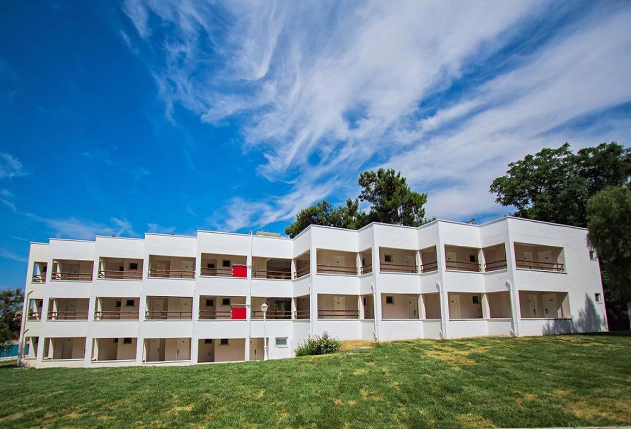 Хотелът разполага общо с 164 стаи, разпределени в 6 триетажни сгради 76 Standart Room (на приземен етаж - 25 м²), 53 Garden Room (с балкон - 24-32 m²), 18 Large Room (с балкон - 30-37m²), 7 Suit Room (40 m²) и 10 Tiny House (дървени къщички - 20 m²). Всички стаи са оборудвани с климатик, телевизор, телефон, баня с душ /вана, сешоар, мини бар (безплатно зареждане с вода - всеки ден), сейф (безплатен), балкон. Почистване на стаите - всеки ден, смяна на спалното бельото и кърпите - 2 пъти в седмицата.
