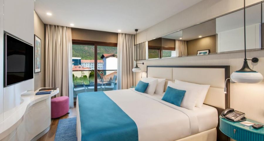 Хотелът разполага с 93 делукс стаи с изглед към сушата и морето. Всички стаи са оборудвани с климатик, телевизор, телефон, баня с душ/вана, сешоар, мини бар (платен), сейф.