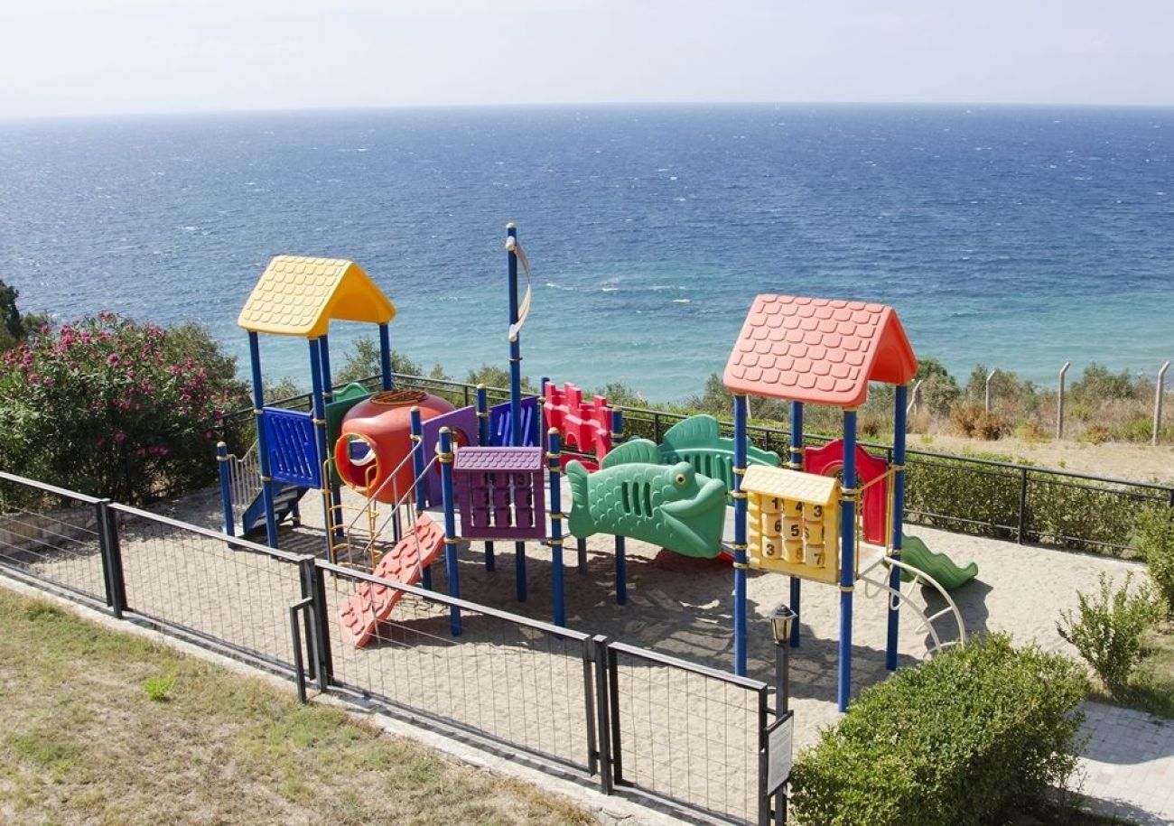 Хотелът разполага с открит плувен басейн за възрастни и по-малък басейн за децата, зона за отдих с шезлонги и голяма градина която води директно към плажната ивица.
