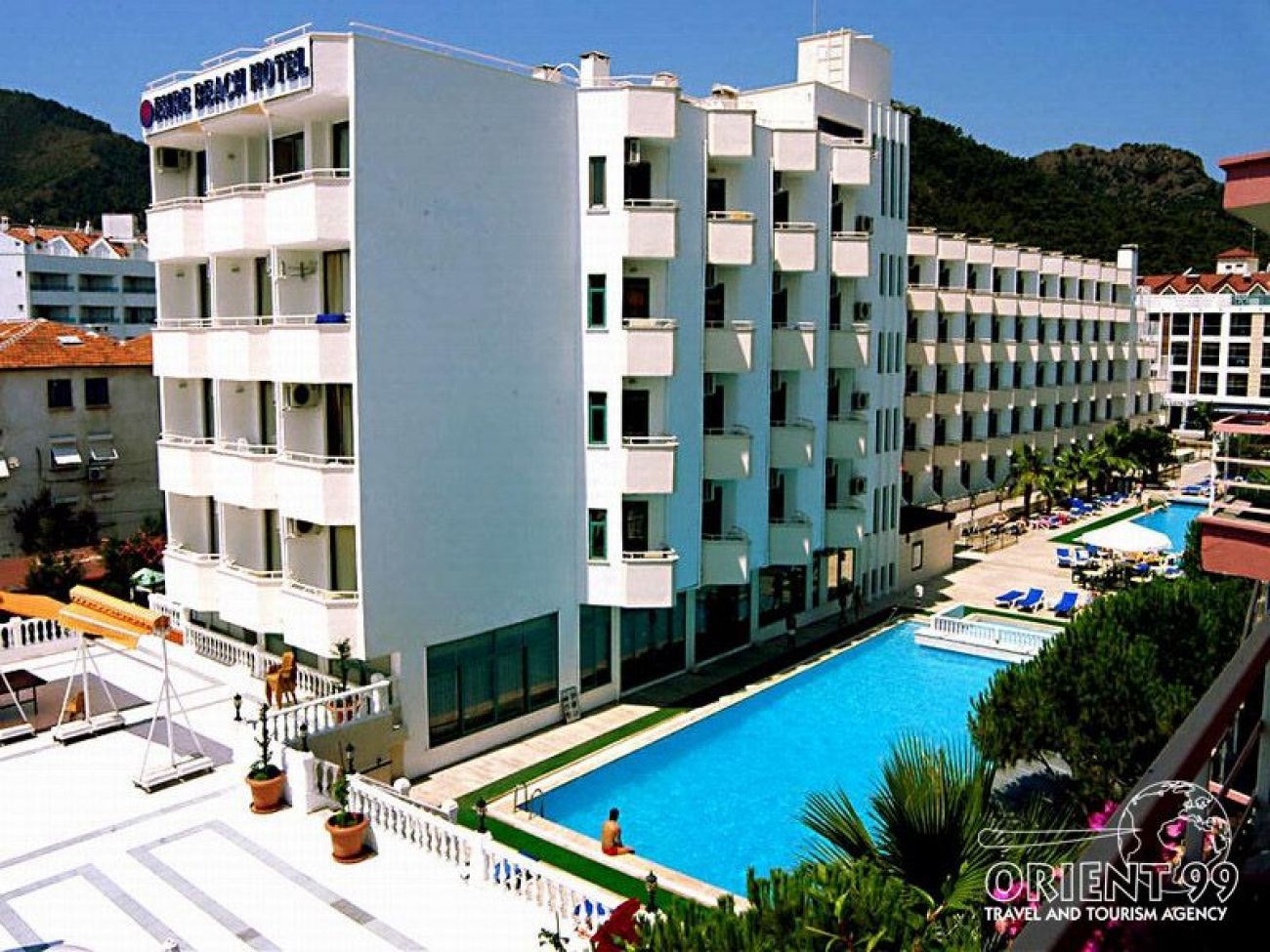 Хотелът се състои от две сгради и е разположен на 91 км от летището в гр. Даламан, на 3 км от центъра на Мармарис, Emre на 50 м от брега на морето (през улицата), Emre Beach на брега на морето със собствен плаж.