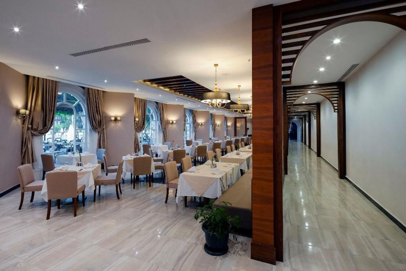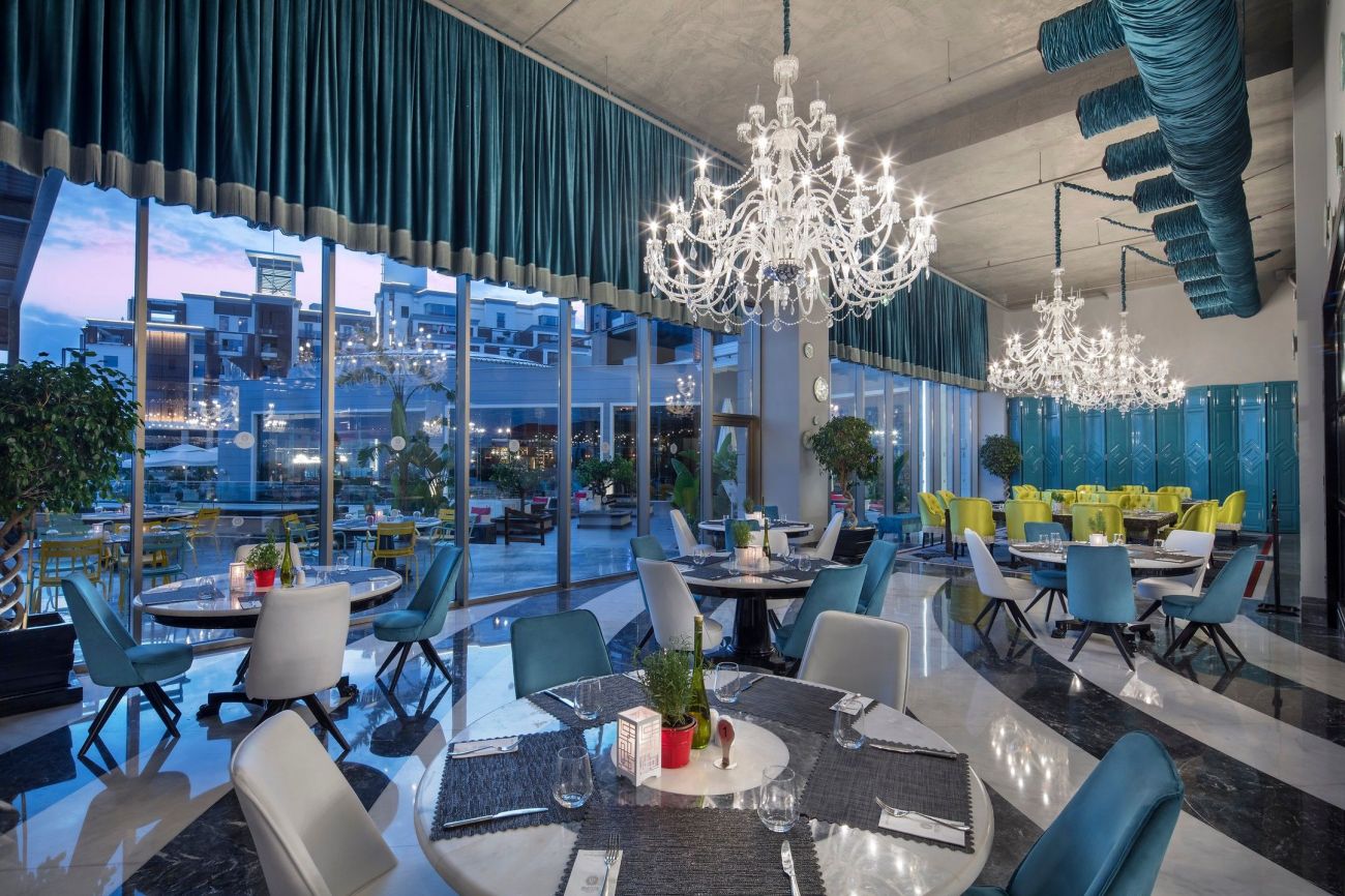 Основен ресторант, 5 а-ла-карт ресторанта (турски, италиански, рибен /за вечеря, 1 посещение за 7 дни безплатно в един от трите/, снек и бургер /за обяд/, 10 бара, 4 открити басейна, включително един с полуолимпийски размери, закрит басейн (отопляем за зимния период), Аквапарк за малки и големи, Спа център, магазини, пералня, 4 конферентни зали.