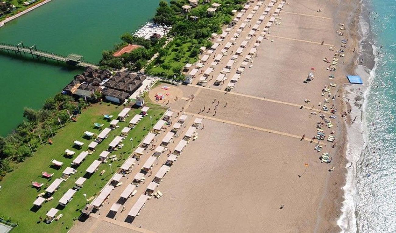Собствен пясъчен плаж с малки камъчета. Дължината на плажа е 500 м. Шезлонги, чадъри, матраци, плажни кърпи са безплатни. Вход в морето - пясък, камъчета. Душ, кабини за смяна, спасител.