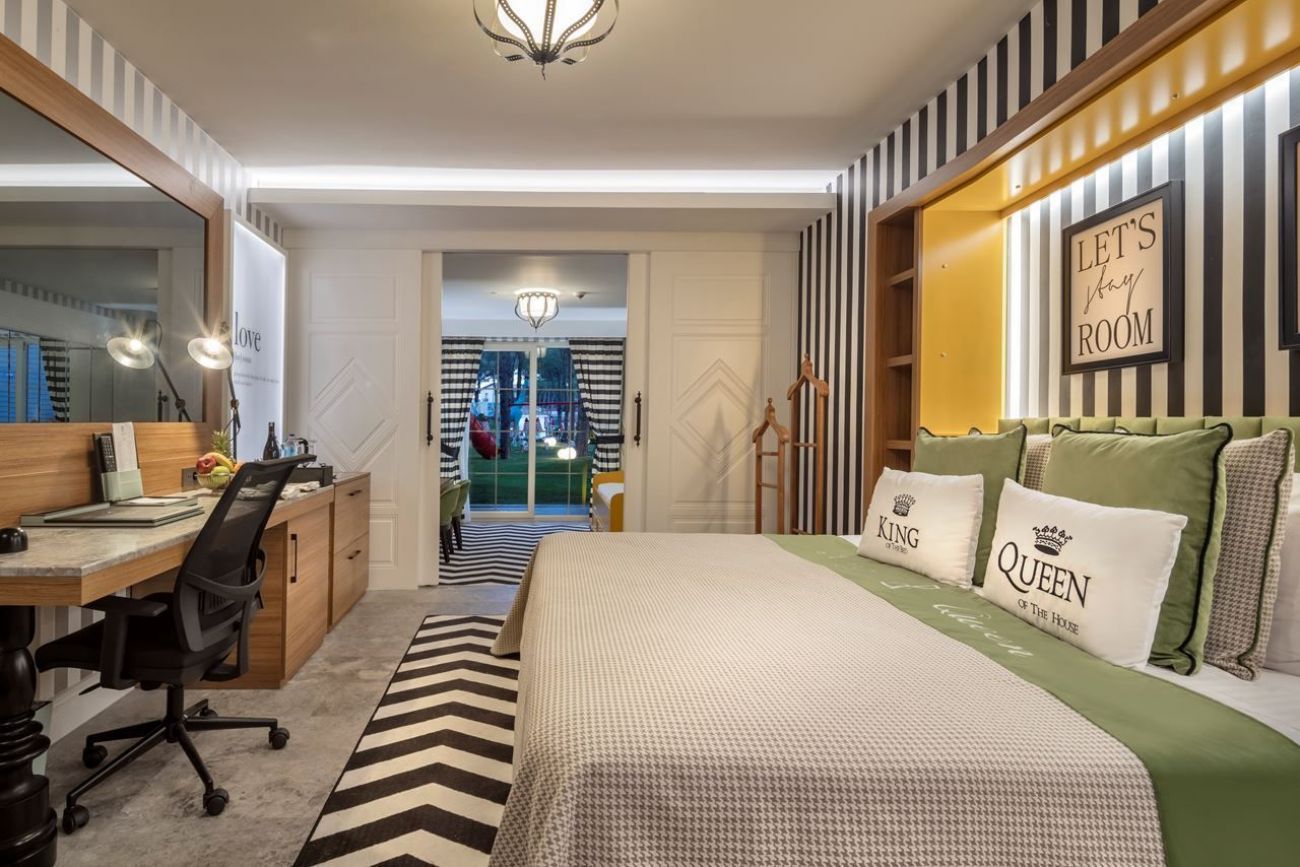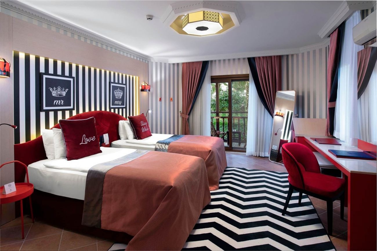 Стаите са оборудвани с: централна климатизация (в основната сграда), индивидуален климатик в бунгалата и градинската сграда, минибар (безалкохолни напитки и бира - безплатно, ежедневно попълване), сателитна телевизия с руски език канали, LCD екран, телефон с директно избиране, душ във всички стаи, сешоар, сейф (безплатно), балкон.