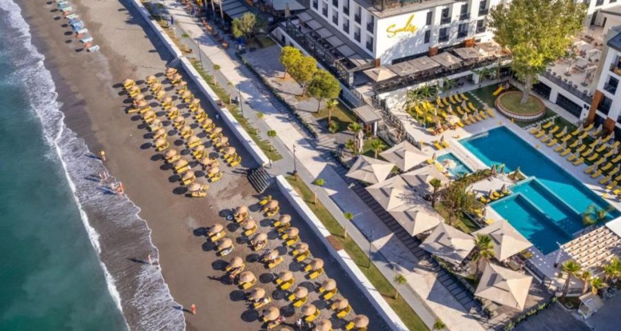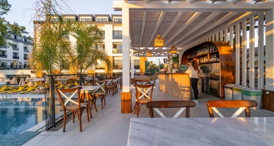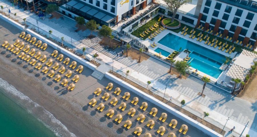 Плаж: хотелът се намира на 1 минута пеша от пясъчен плаж Calis. Шезлонги, чадъри и хавлии - безплатно на плажа и при басейна.