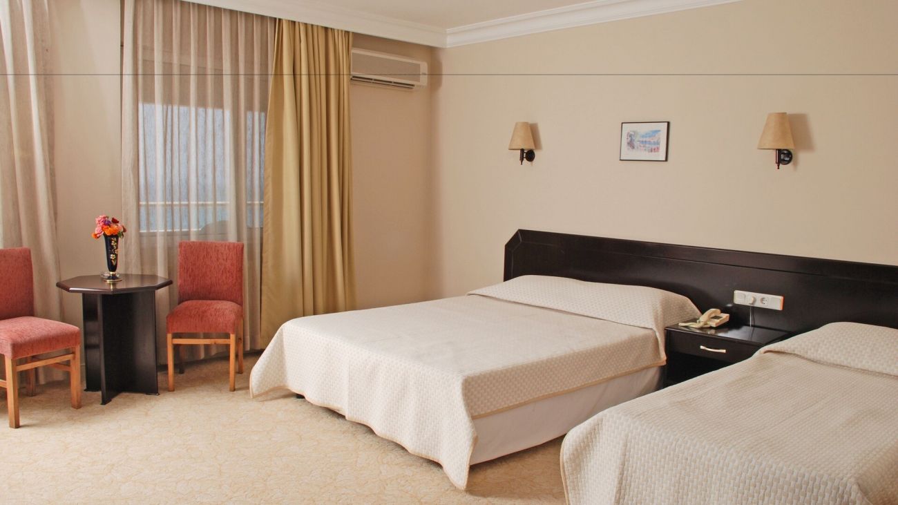 Хотелът разполага общо със 180 стандартни стаи. Всички стаи са оборудвани с климатик, телевизор, телефон, баня с душ/вана, сешоар, сейф (платен), балкон. Почистване на стаите- всеки ден.