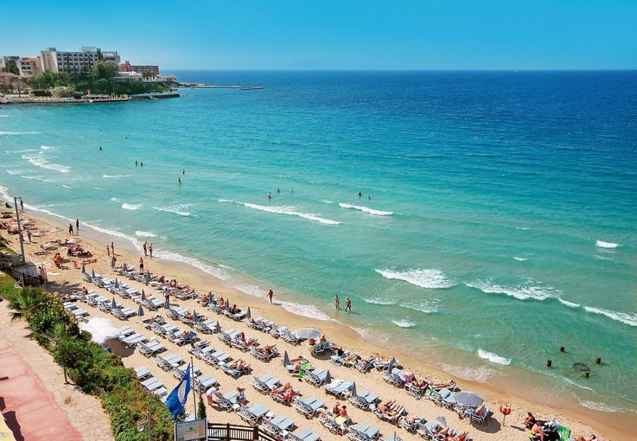 Хотелът е разположен на 75 км от летището на гр. Измир, на 2 км от центъра на гр. Кушадасъ, през пешеходната улица от градския плаж.