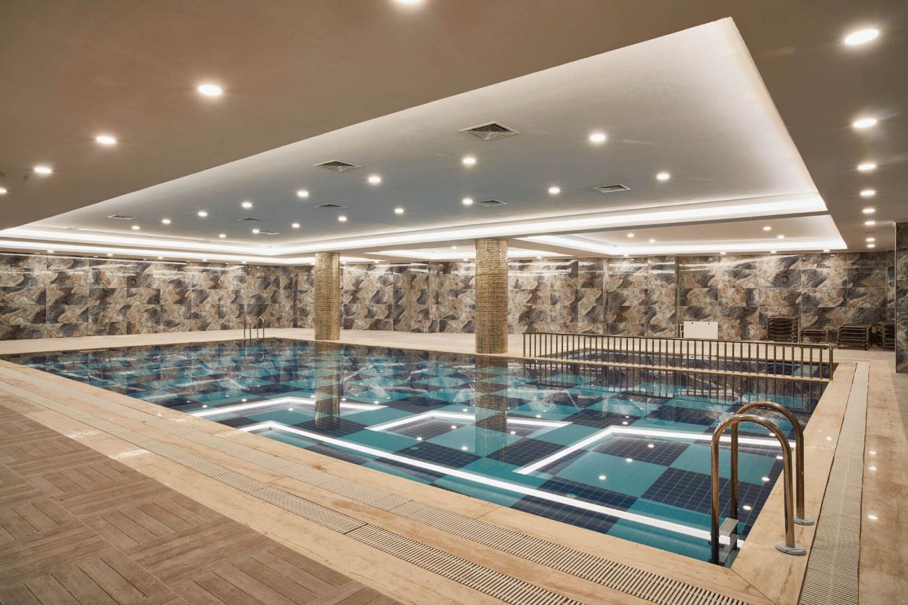 Обща площ 1 096,32 м2. Състои от две централни сгради, блоове А и В, 2 основни ресторанта, 1 a la carte ресторант, американски бар, библиотека, комферентни зали, турска баня, сауна, фитнес зала с инструменти, стаи за масажи , парна бяня, лекарски кабинет, бръснар, фризьор, багаж и сейф, 2 открити басейна и детски басейни за игра, закрит плувен басейн и детски игрален басейн, закрит паркинг за 60 автомобила.