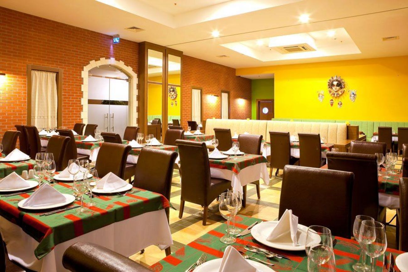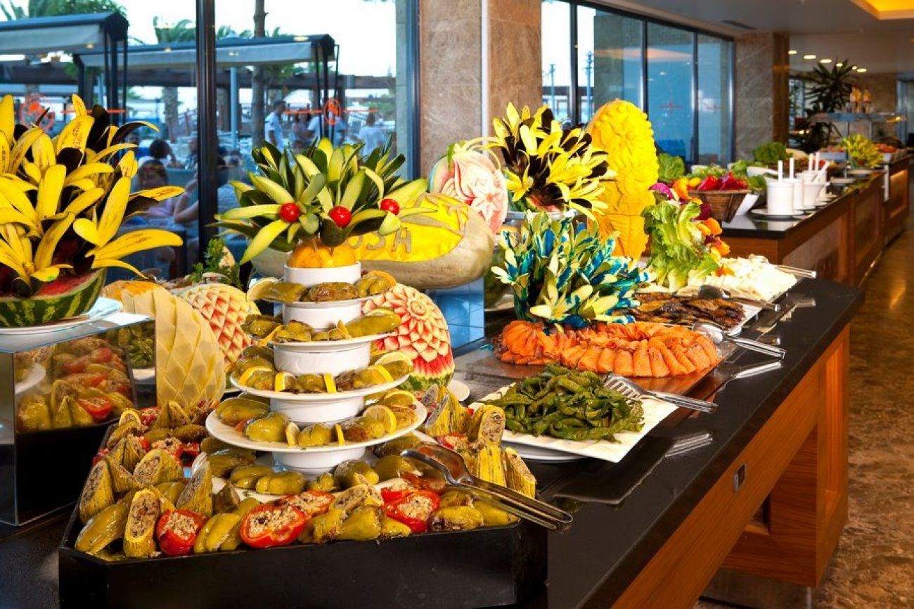 основен ресторант, 3 А la carte ресторанта (турски, средиземноморски, рибен – с предварителна резервация и едно посещение за целия период безплатно, валидно само за резервации минимум 7 нощувки), 3 бара, конферентна зала;