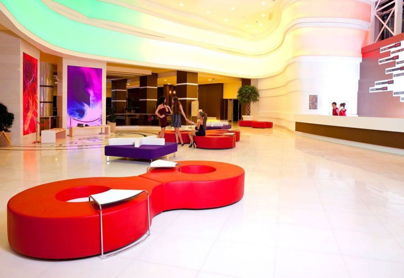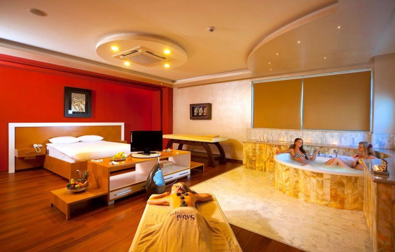 2 открити басейна, закрит басейн с подгряване на водата, водна пързалка, детски басейн, детска площадка, мини клуб (4-12г.), детска стая за игри, турска баня, сауна, фитнес център, аеробика, плажен волейбол, баскетбол, тенис на маса, тенис на корт, дартс, анимация, дискотека (вход), безжичен интернет (в лобито, конферентните зали и басейна)